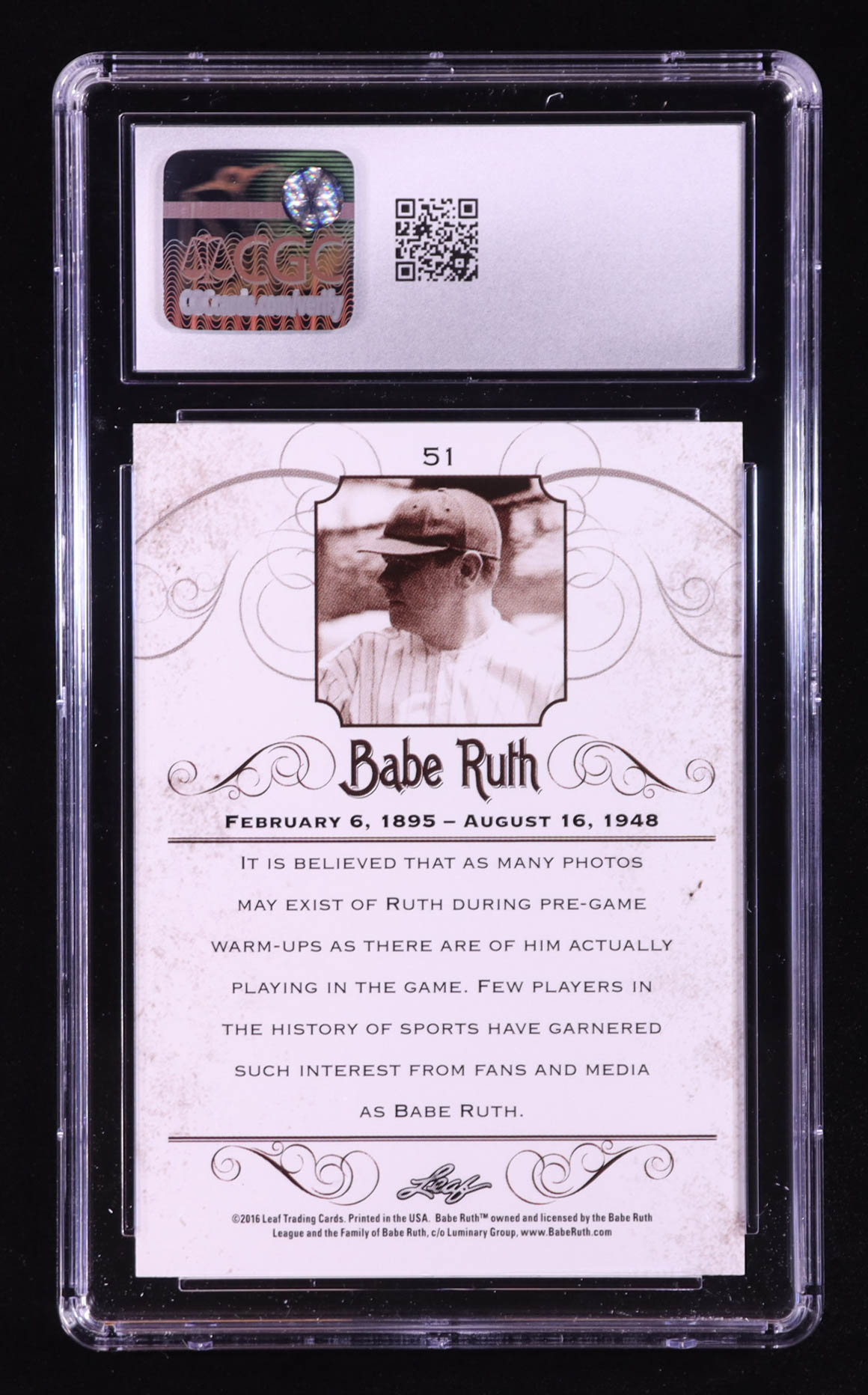 Babe Ruth 2016 Leaf Babe Ruth Collection #51 (CGC 10)