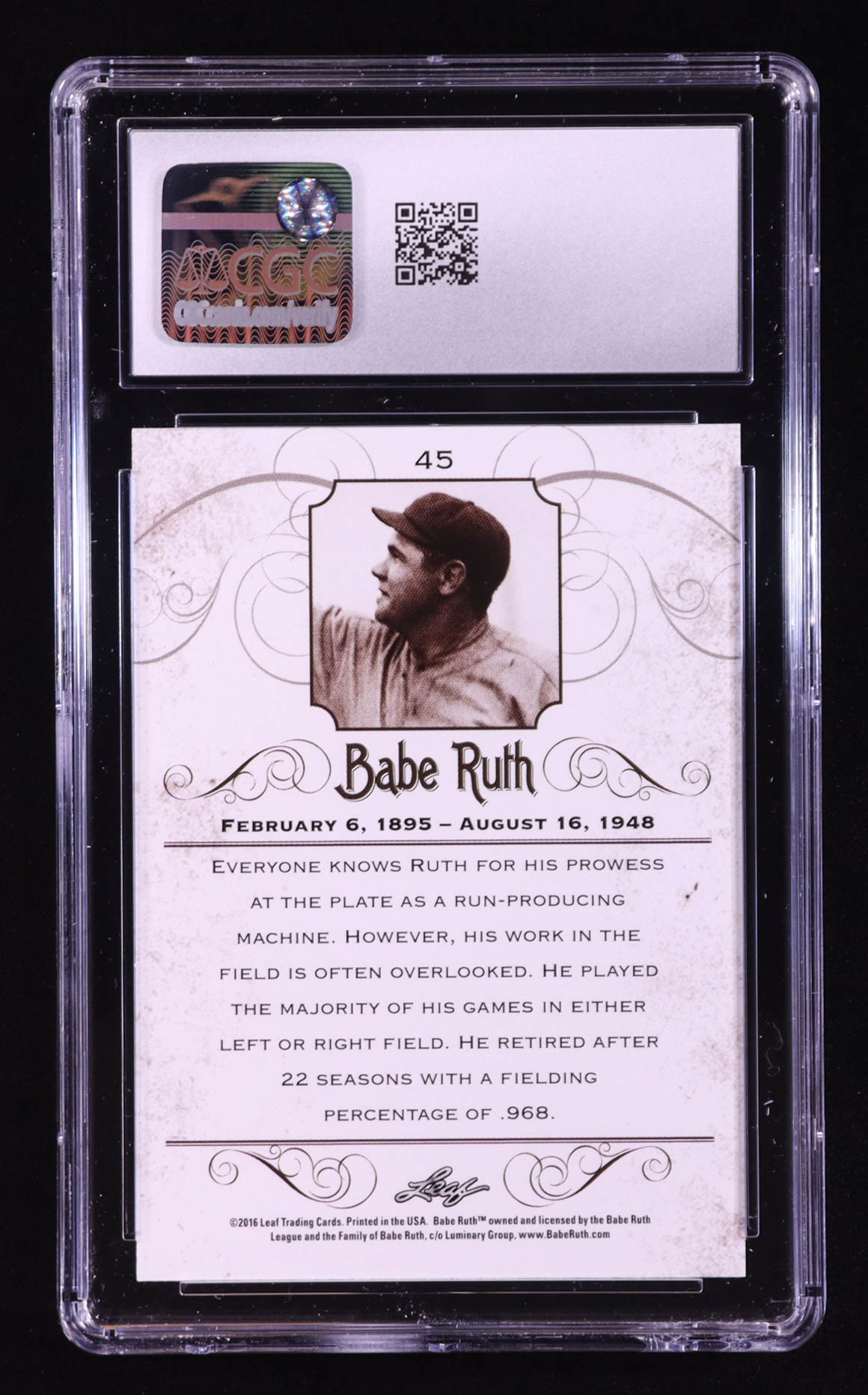 Babe Ruth 2016 Leaf Babe Ruth Collection #45 (CGC 10)