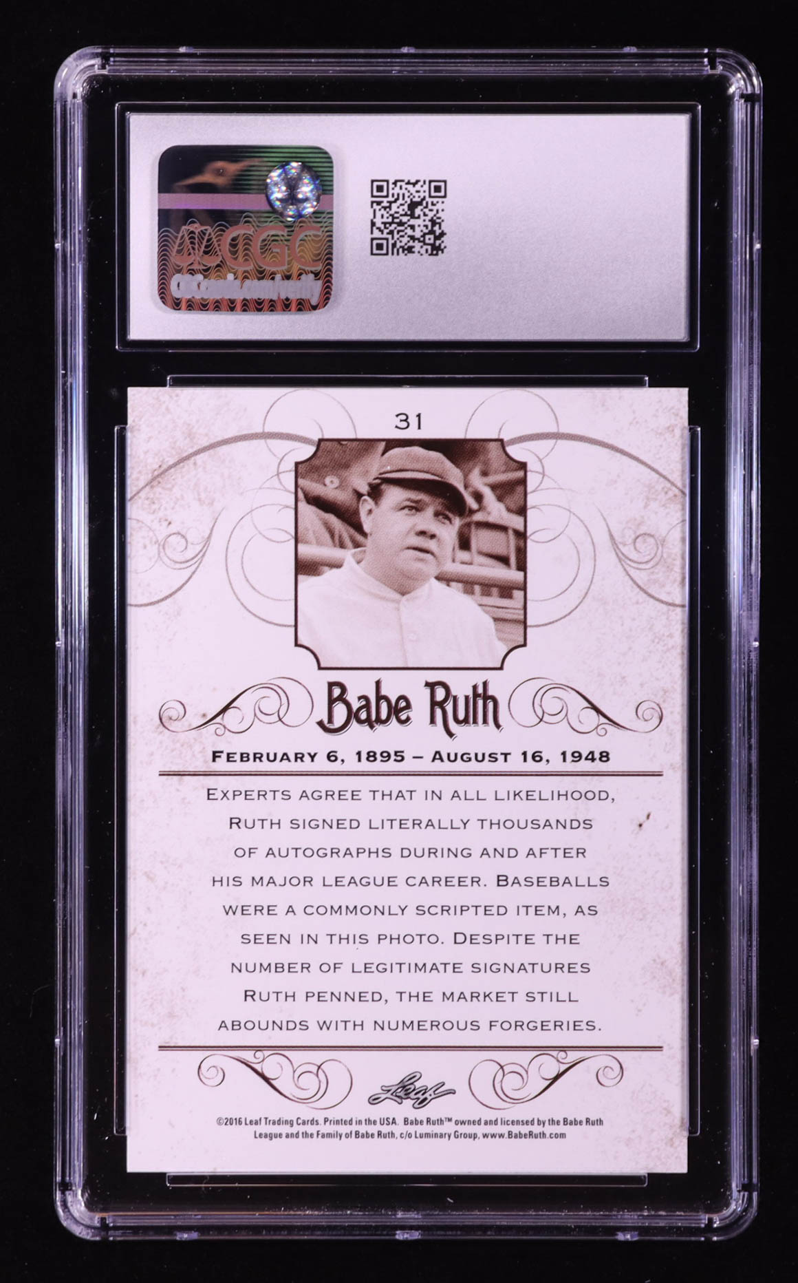 Babe Ruth 2016 Leaf Babe Ruth Collection #31 (CGC 10)