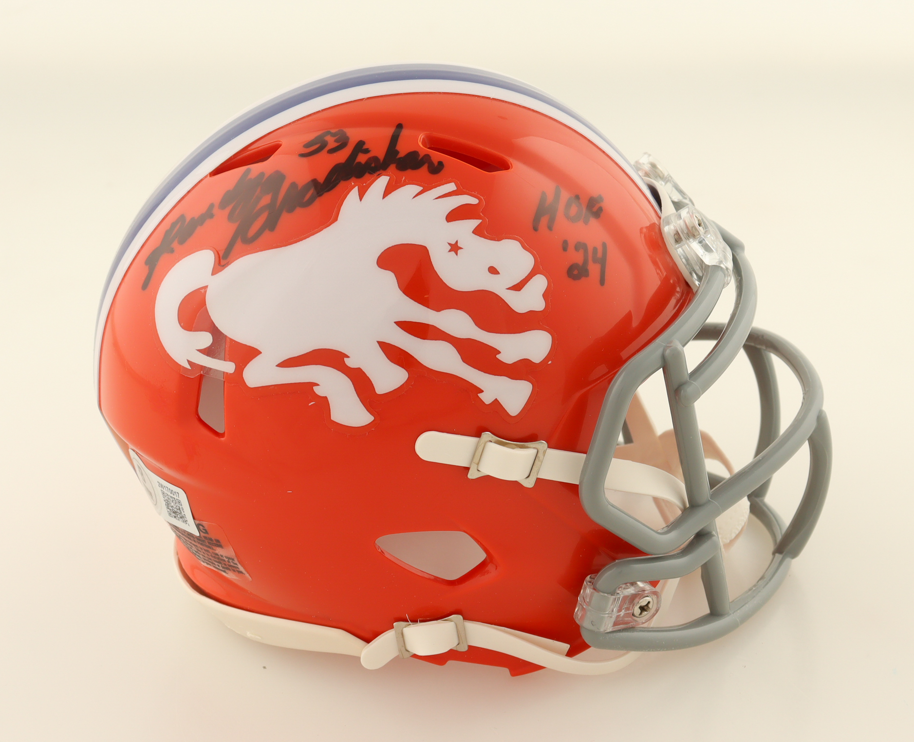Randy Gradishar Signed Broncos Throwback Alternate Speed Mini Helmet Inscribed "HOF 24" (Beckett)