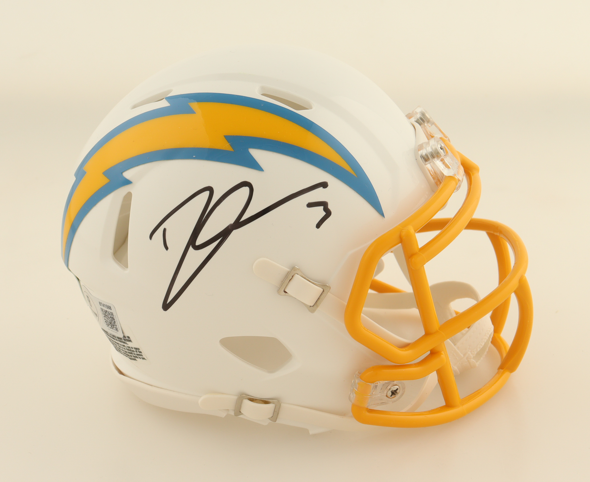 Riddell Los Angeles Chargers Speed Mini Helmet. Hand-signed by Derwin James.