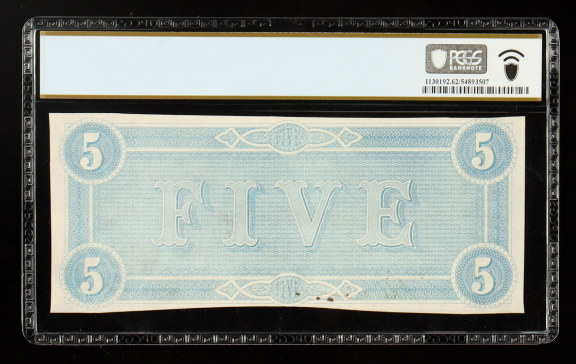 1864 Confederate $5 Currency Note, T-69 Series 7 (PCGS Uncirculated 62)