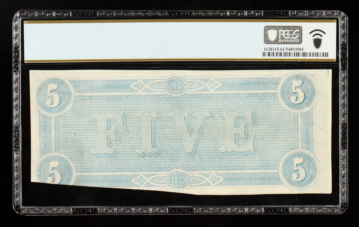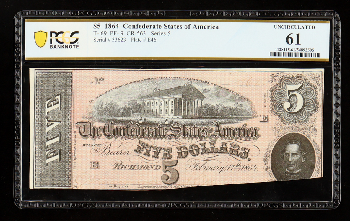 1864 Confederate $5 Currency Note, T-69 Series 5 (PCGS Uncirculated 61)
