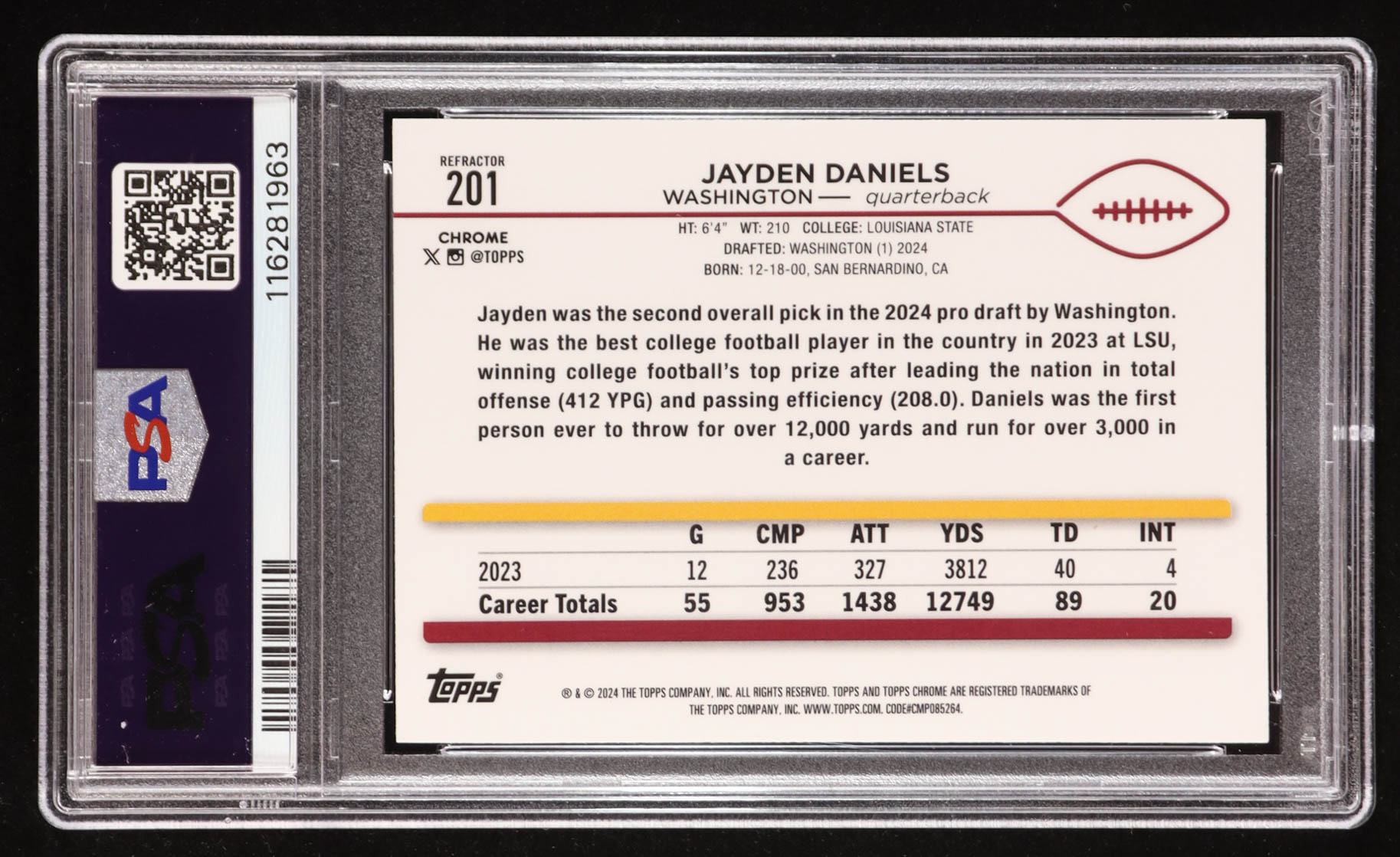 Jayden Daniels 2024 Topps Chrome Refractors #201 RC (PSA 9)