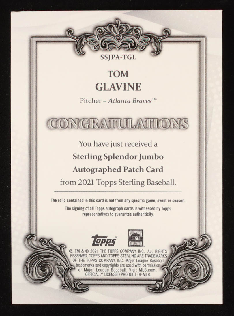 Tom Glavine 2021 Topps Sterling Sterling Splendor Jumbo Patch Autographs Red #SSJPATGL #3/3