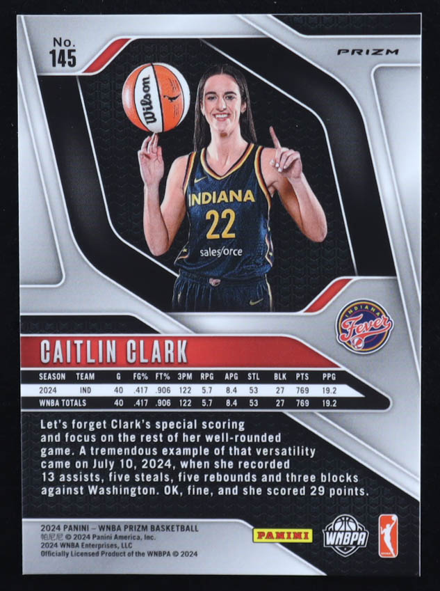 Caitlin Clark 2024 Panini Prizm WNBA Prizms Silver #145 RC