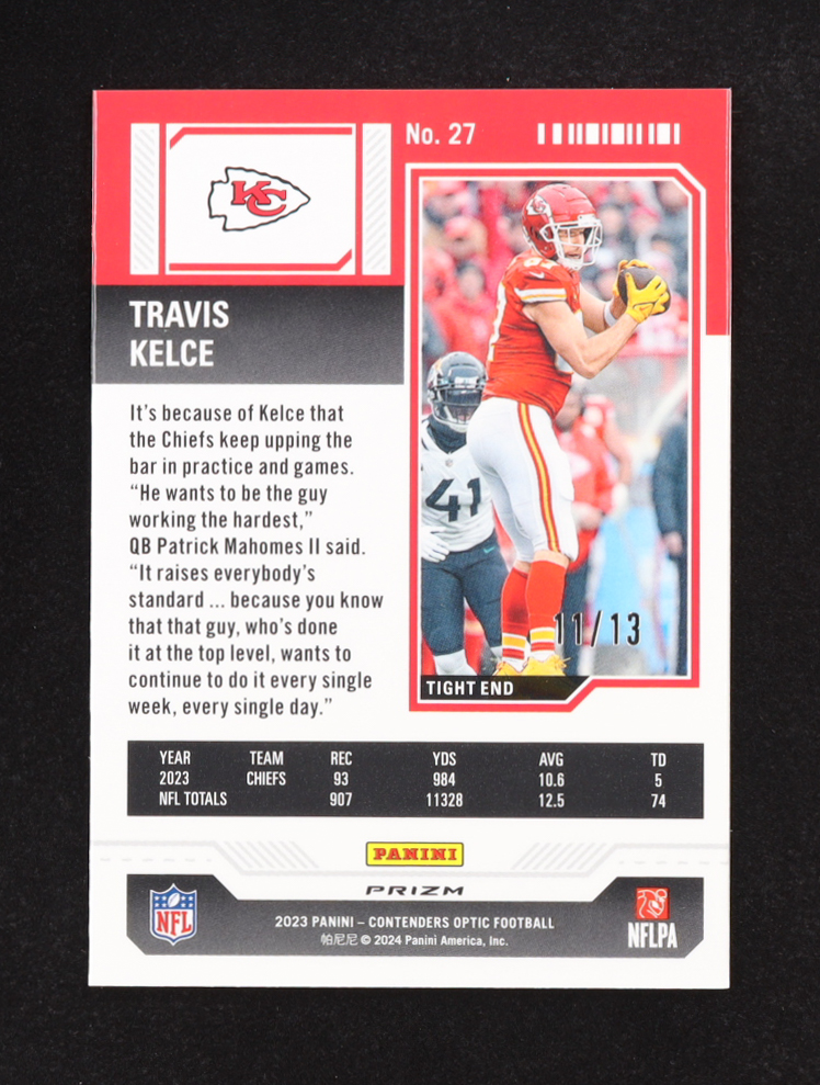 Travis Kelce 2023 Panini Contenders Optic Red White and Blue #27 #11/13