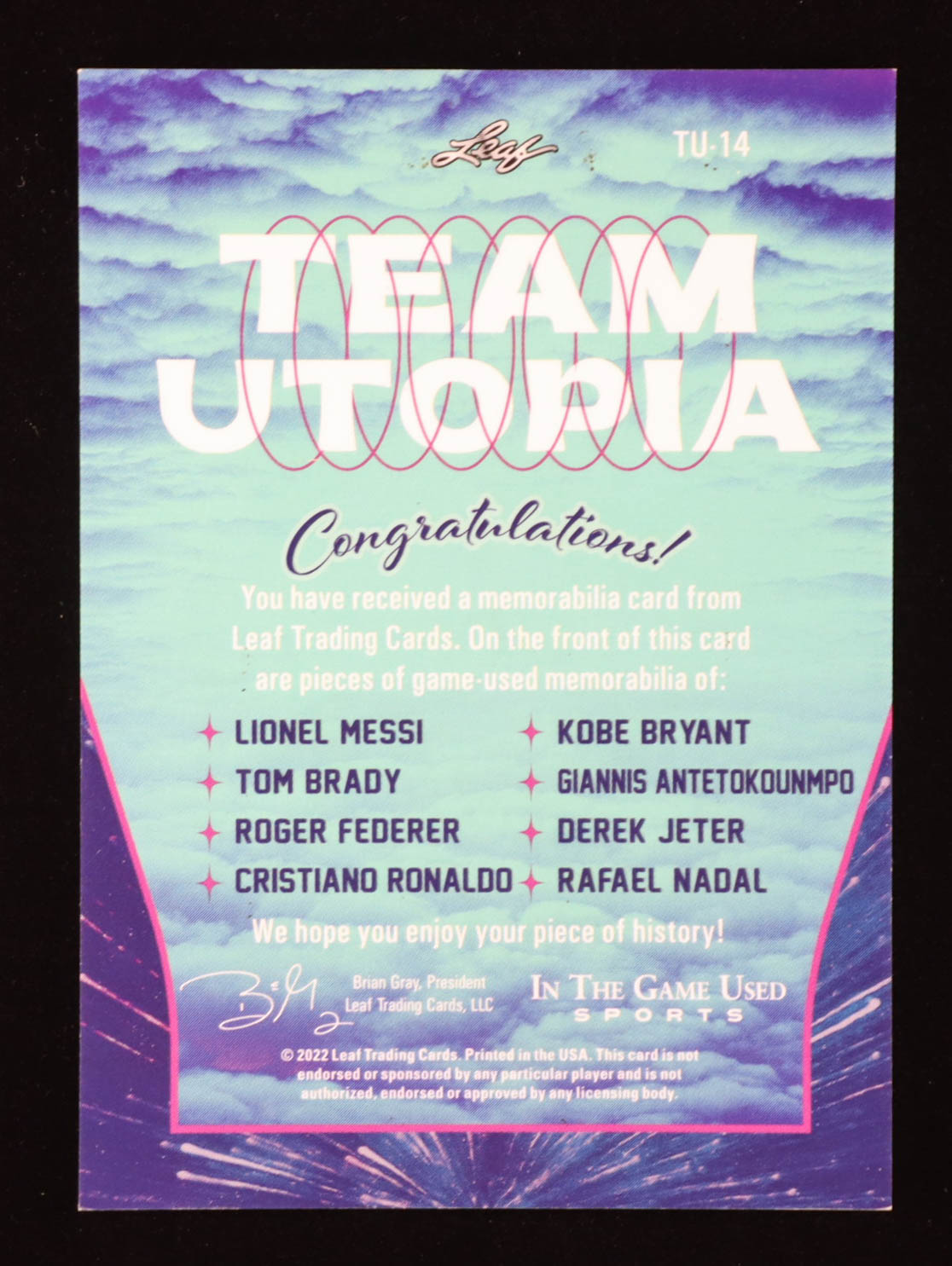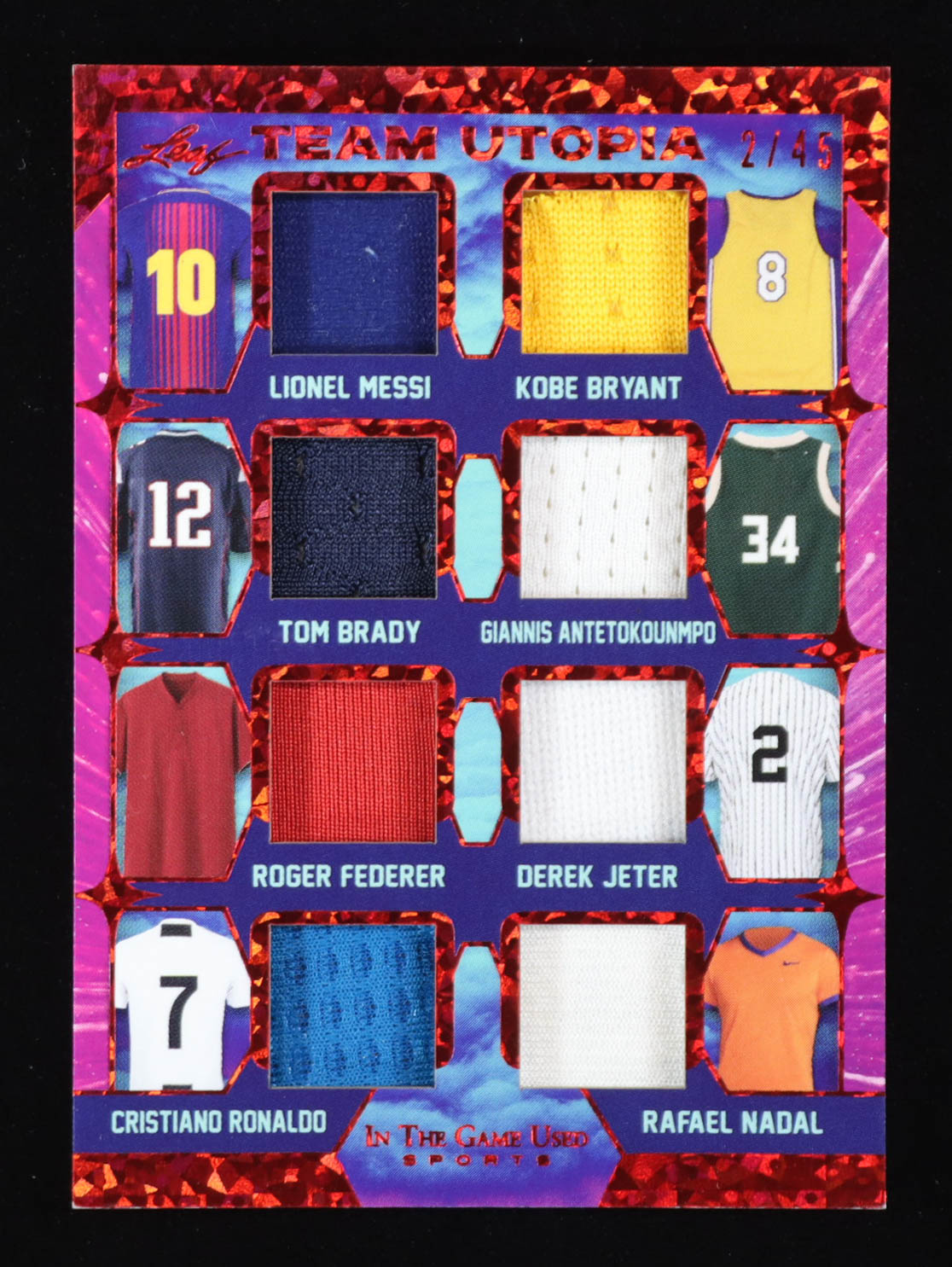 Lionel Messi / Kobe Bryant / Tom Brady / Giannis Antetokounmpo / Roger Federer / Derek Jeter / Cristiano Ronaldo / Rafael Nadal 2022 ITG Used Sports Team Utopia Materials Spectrum Red #TU14 #2/45