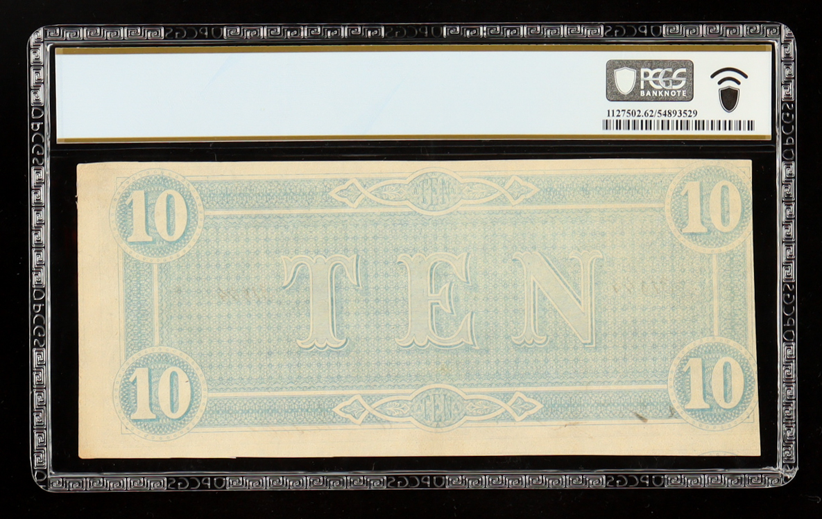 1864 Confederate $10 Currency Note, T-68 Series 8, Hand Drawn 8 (PCGS Uncirculated 62)