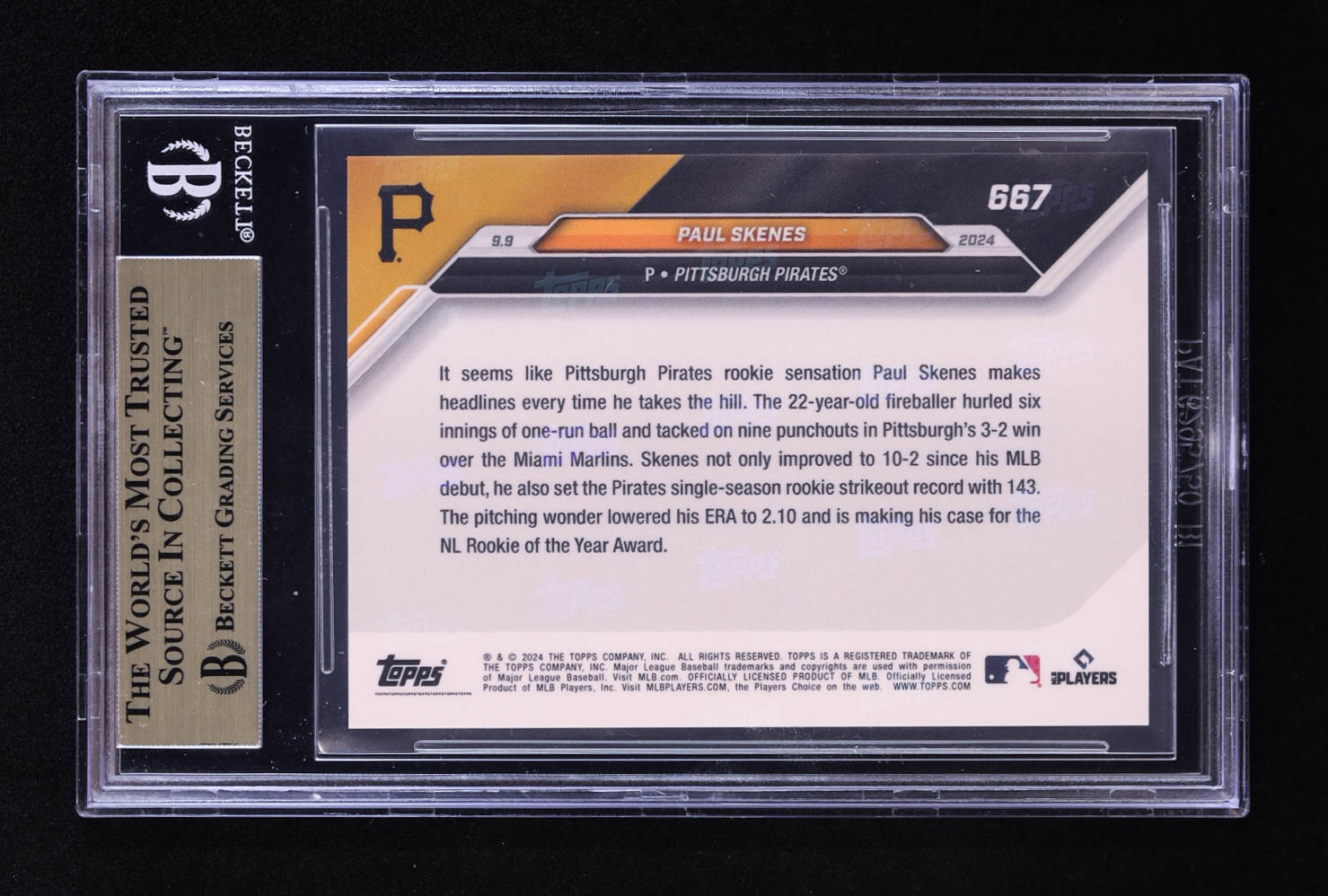 Paul Skenes 2024 Topps Now #667 RC (BGS 9.5)