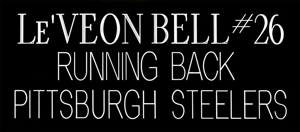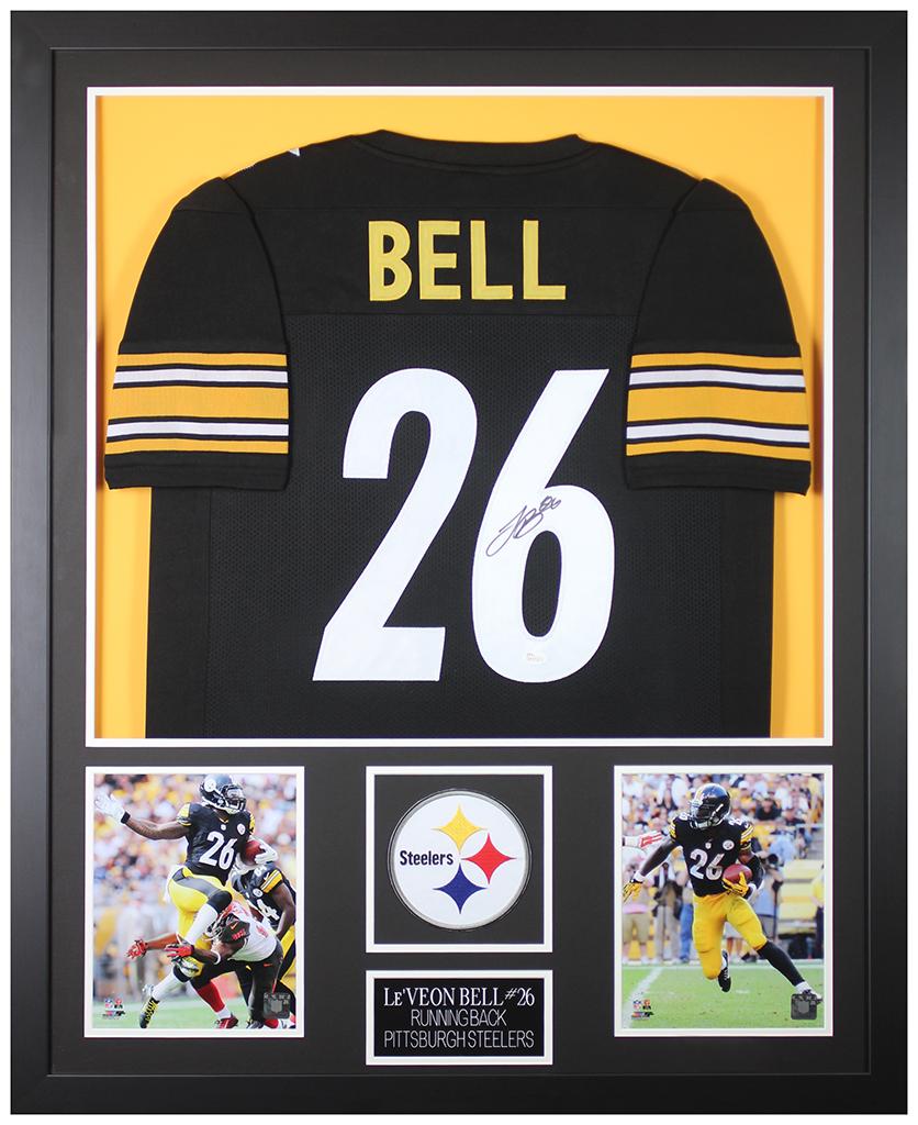 Custom frame measures 35” x 43” in size and features a jersey that has been hand-signed by Le'Veon Bell.