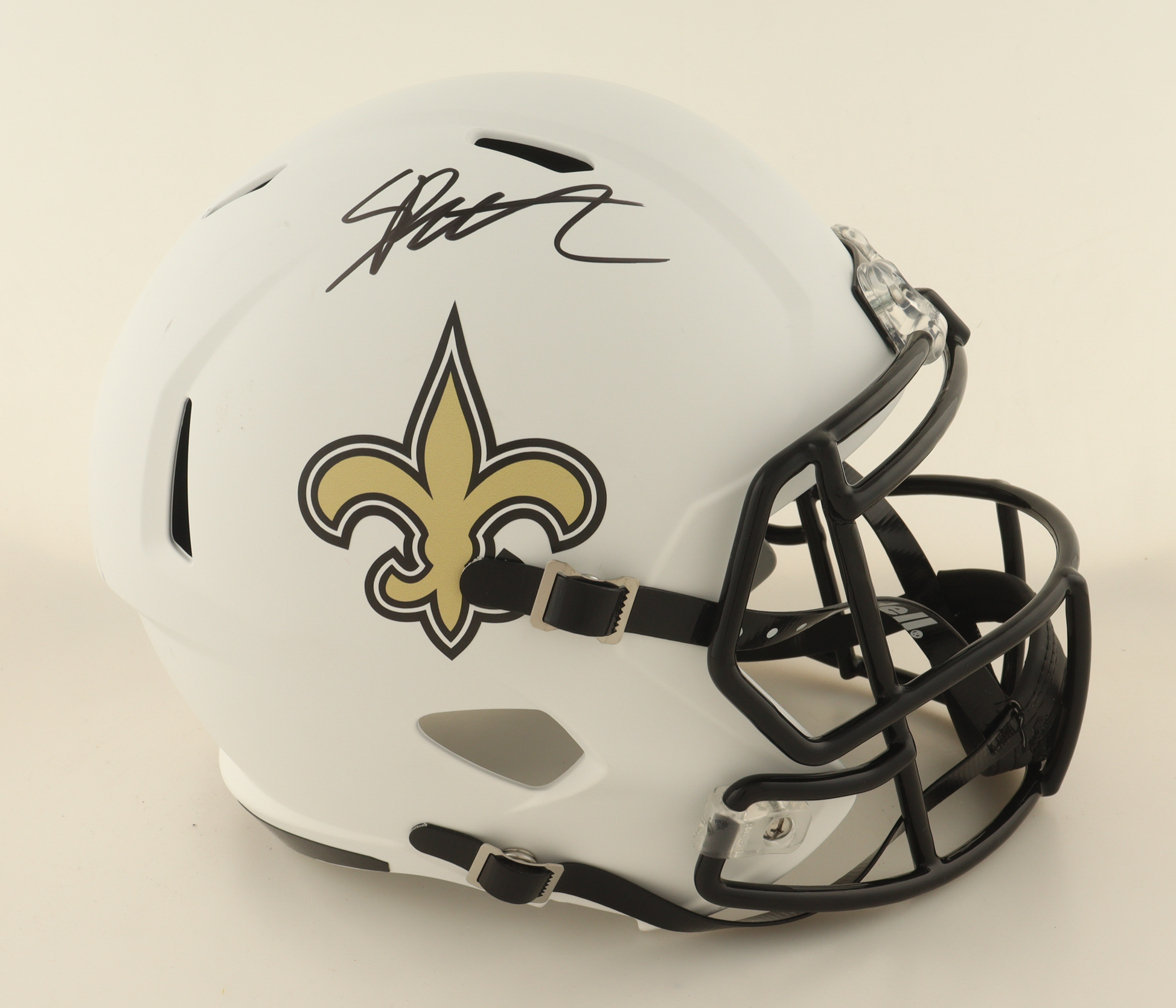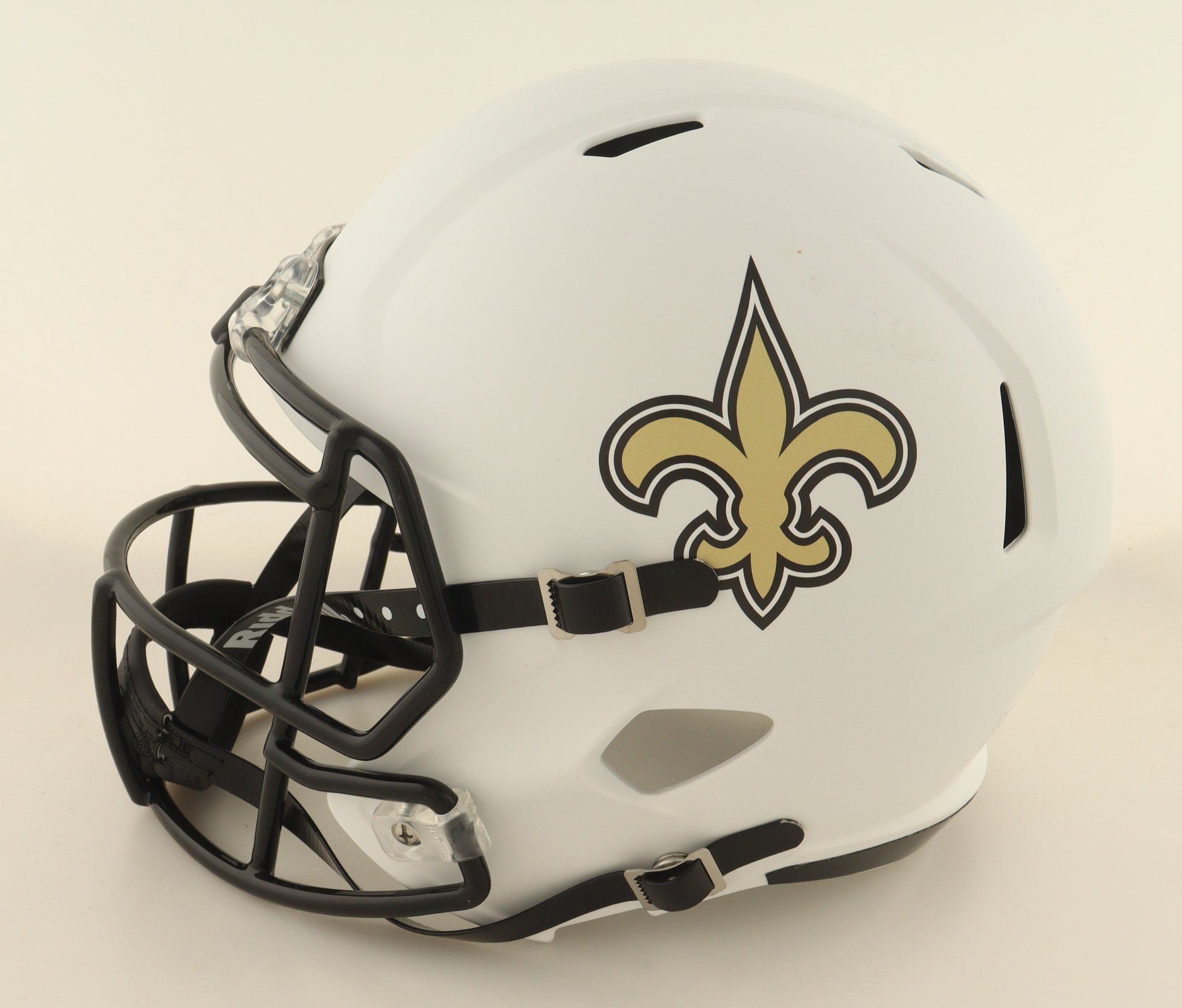 Riddell New Orleans Saints full-size replica Lunar Eclipse Alternate Speed helmet. Hand-signed by Spencer Rattler. Please note, the helmet is lightly scuffed throughout.