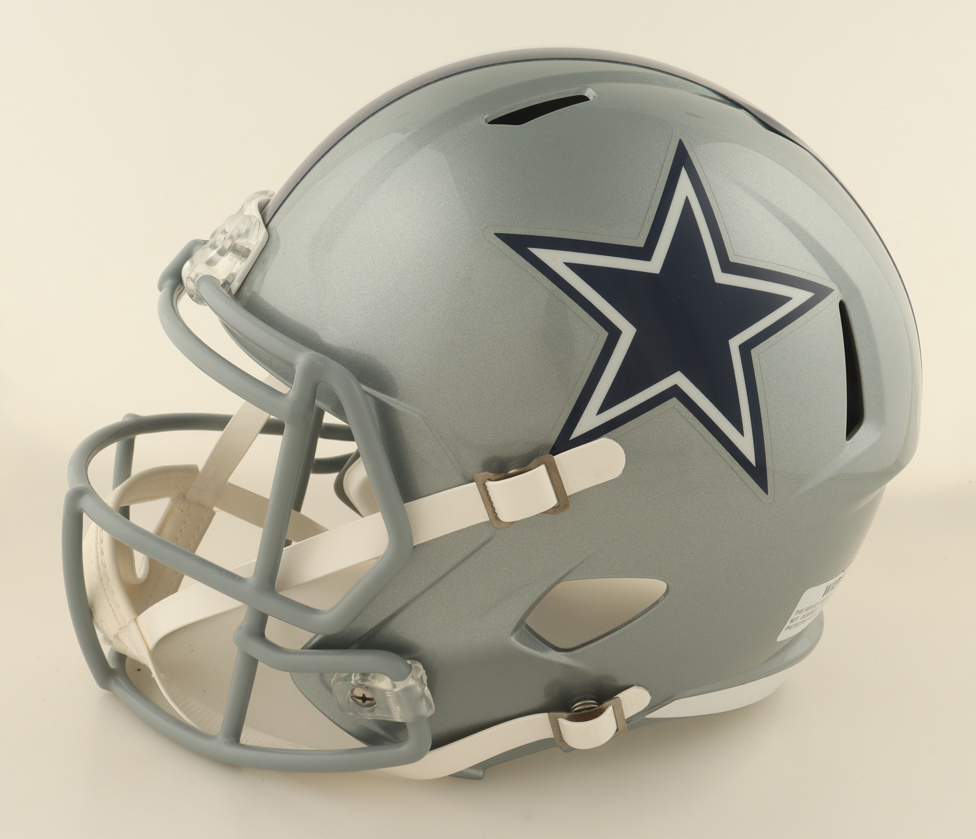 Riddell Dallas Cowboys full-size replica Speed helmet. Hand-signed by Emmitt Smith (HOF). Please note, the signature is scuffed.