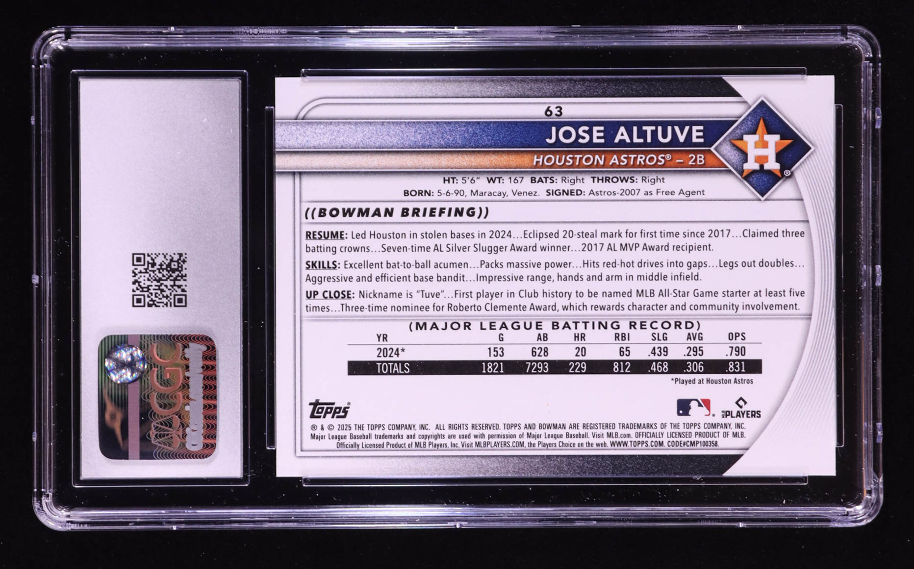 Jose Altuve 2025 Bowman #63 (CGC 10)