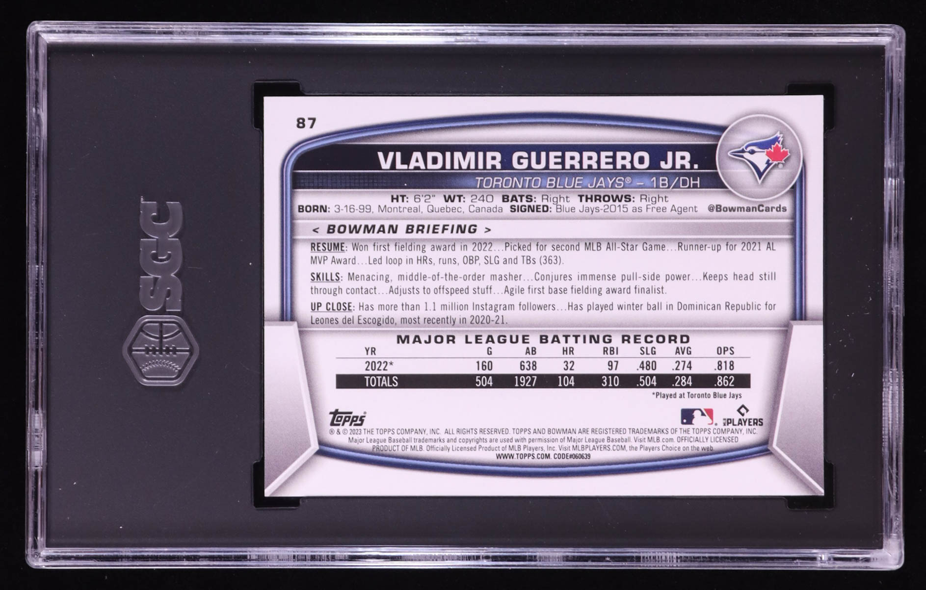 Vladimir Guerrero Jr. 2023 Bowman #87 (CGC 10)