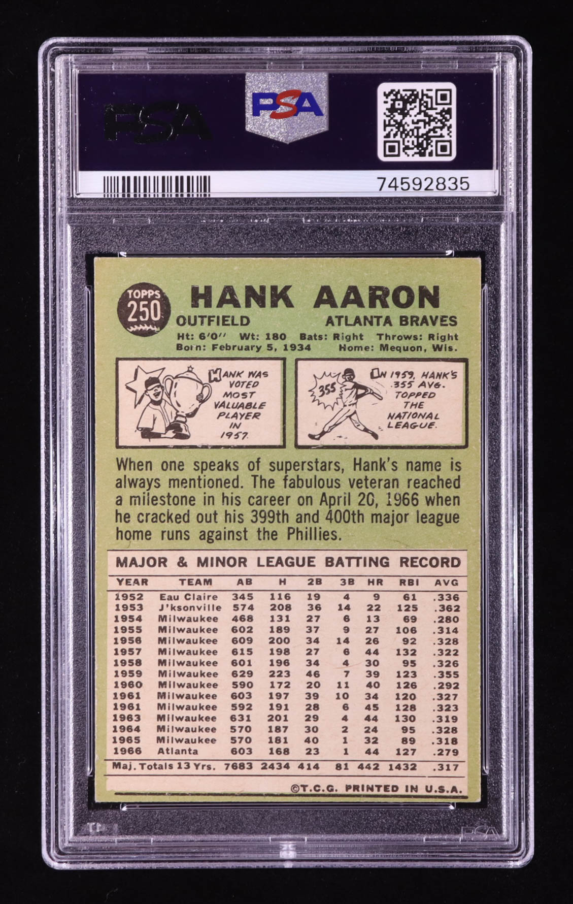 Hank Aaron 1967 Topps #250 (PSA 5) (MC)