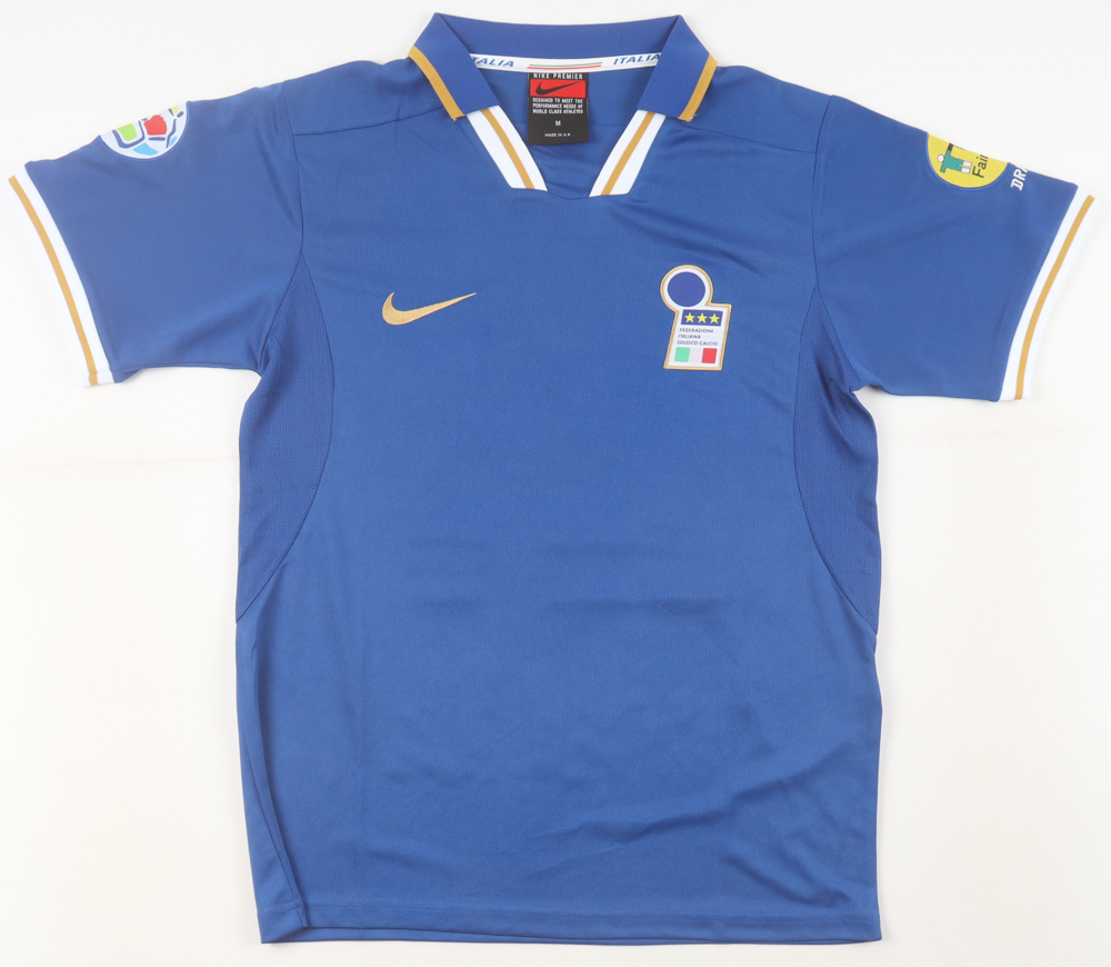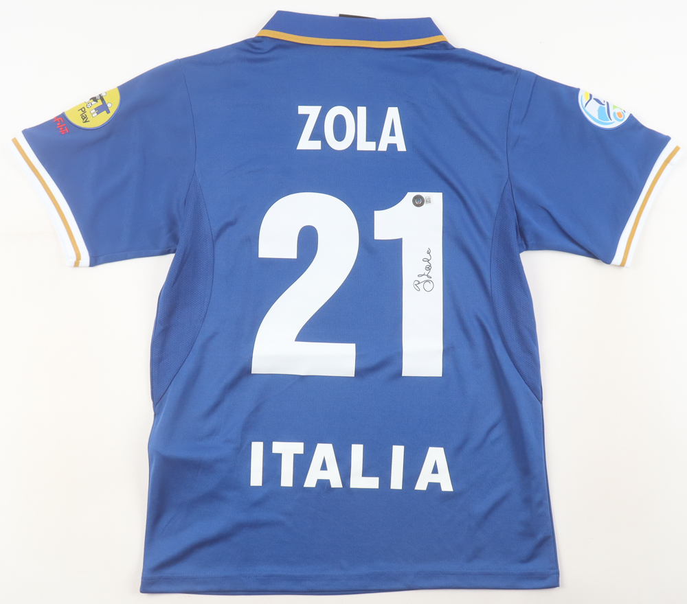 Nike jersey with everything pressed on, size M. Hand-signed by Gianfranco Zola (Italy national football team).