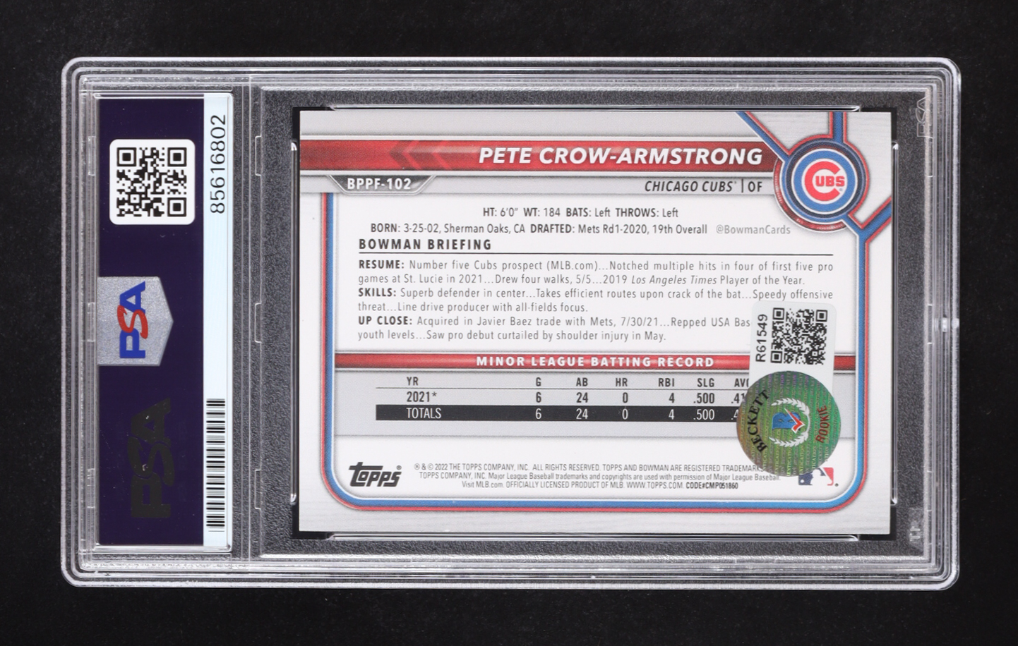 Pete Crow-Armstrong Signed 2022 Bowman 1st Edition #BPPF102 RC (PSA Authentic)