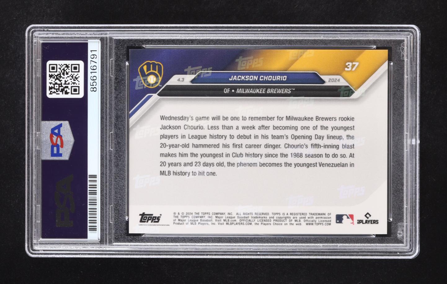 Jackson Chourio Signed 2024 Topps Now #37 RC (PSA Authentic)
