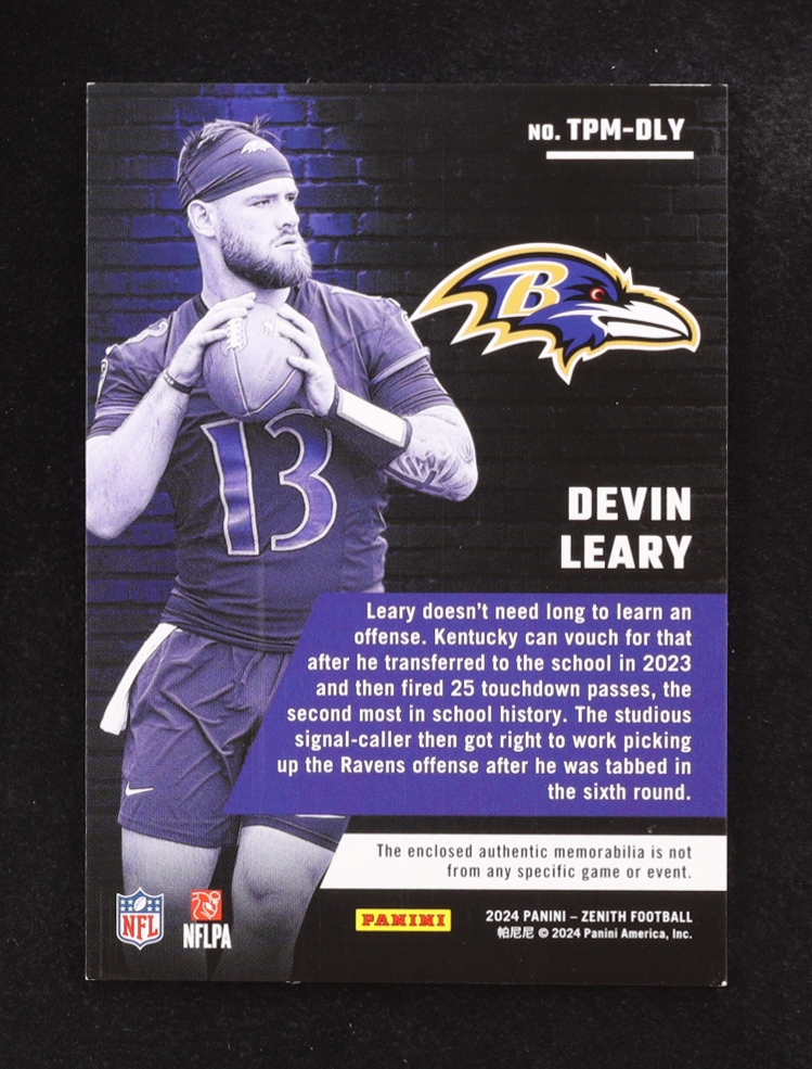 Devin Leary 2024 Zenith Turning Pro Memorabilia #13 RC