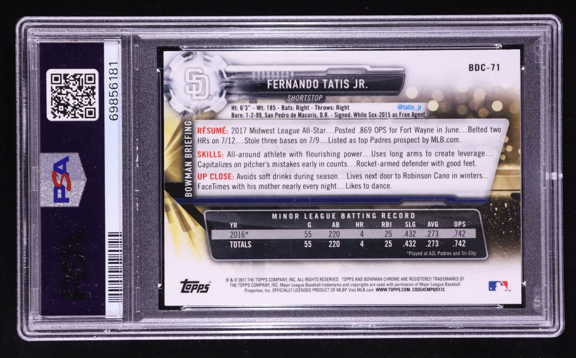 Fernando Tatis Jr. 2017 Bowman Chrome Draft #BDC71 RC (PSA 10)