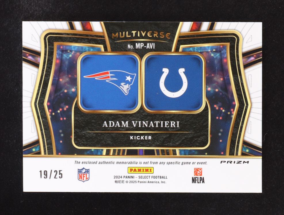Adam Vinatieri 2024 Select Multiverse Dual Jerseys Prizm Tie Dye #42 #19/25