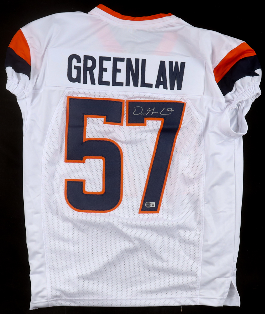Custom jersey. Everything is sewn on, size XL. Hand-signed by Dre Greenlaw.