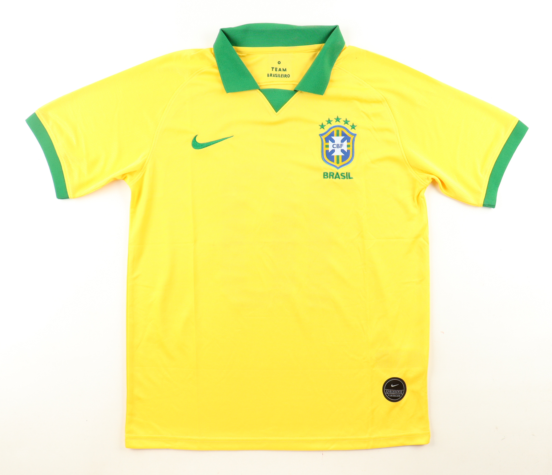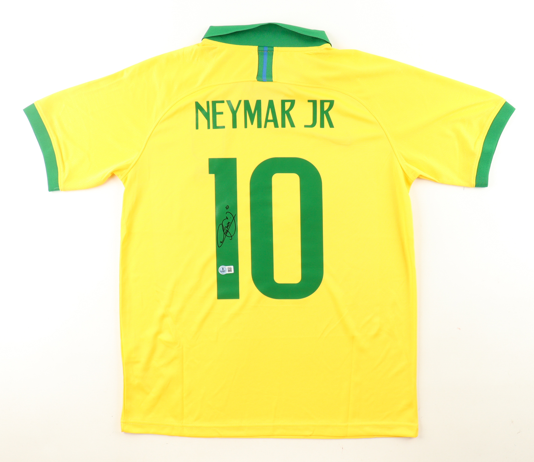 Nike jersey. Everything is pressed on, size M. Hand-signed by Neymar Jr. (Brazil National Football Team).