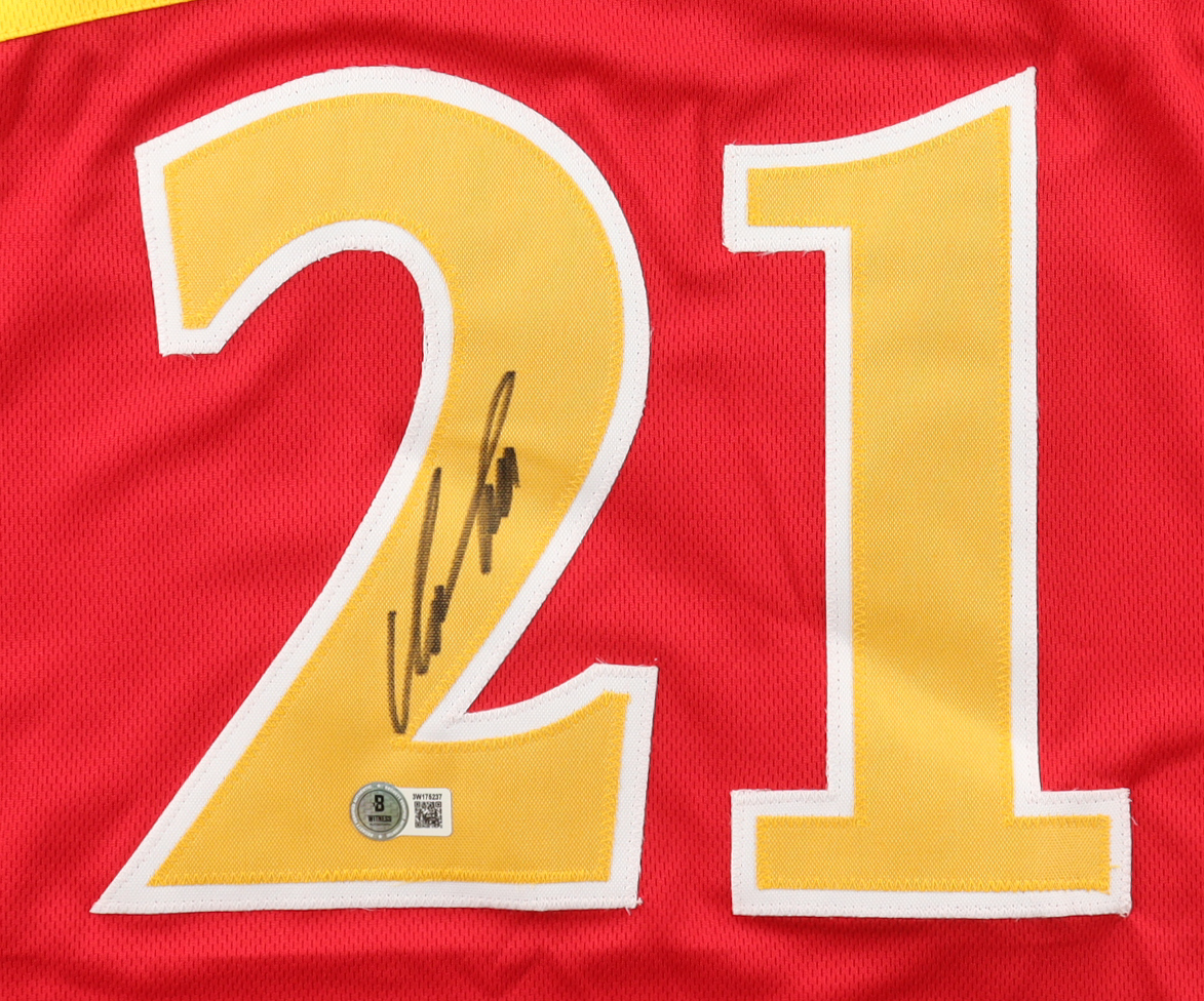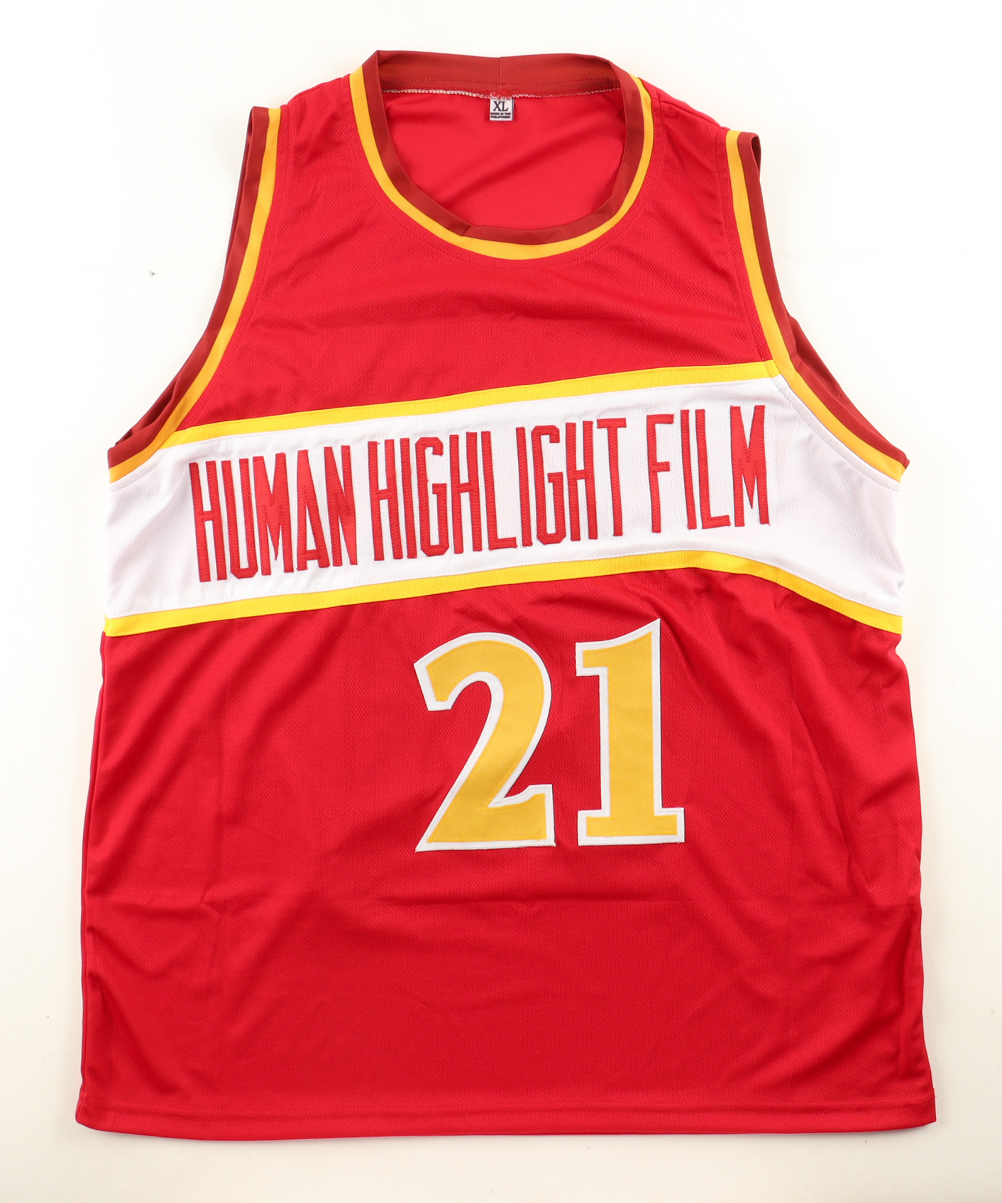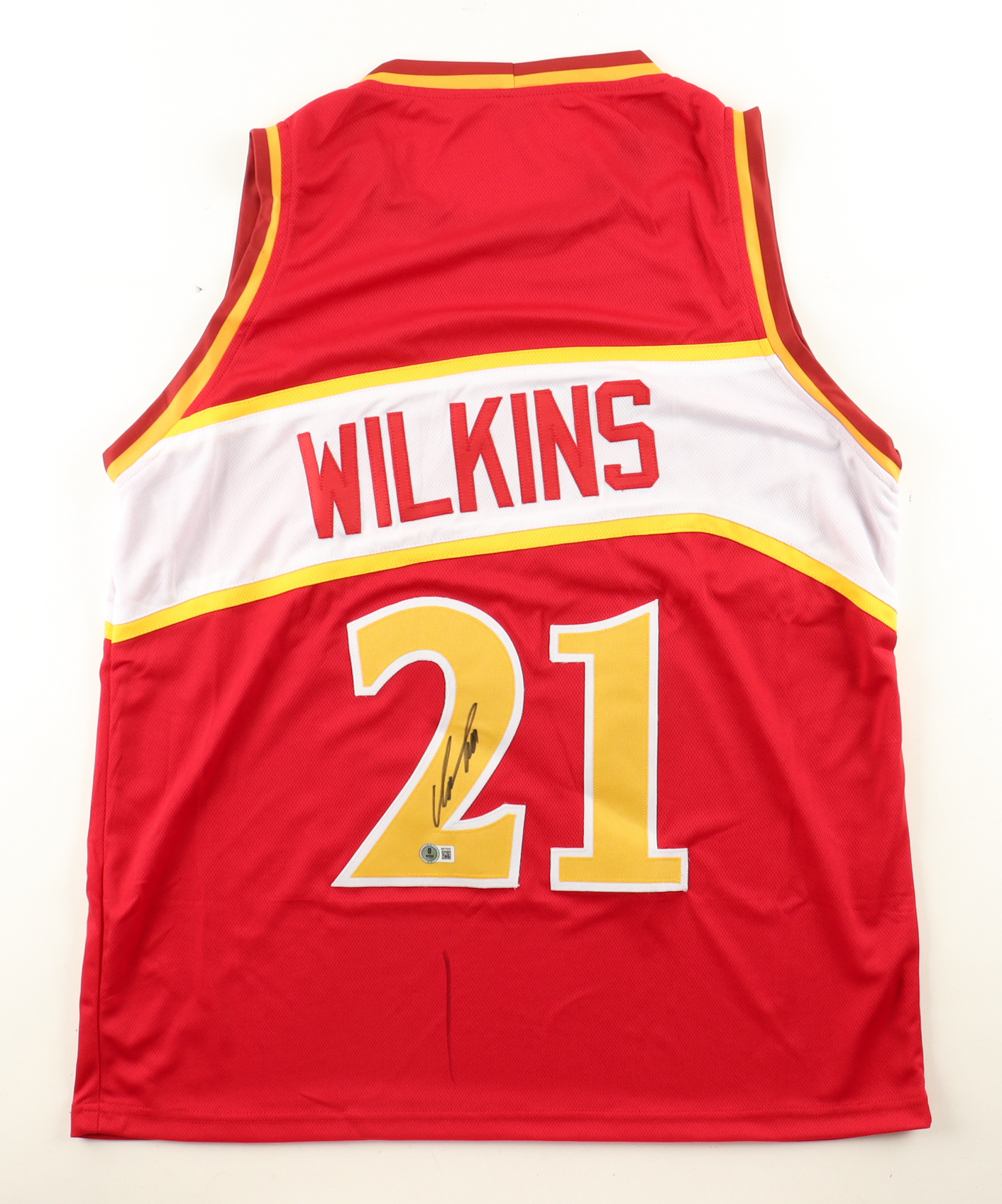 Custom jersey. Everything is sewn on, size XL. Hand-signed by Dominique Wilkins (HOF). Please note, there is a stray ink mark on the back of the jersey. See photos regarding the condition of the item.