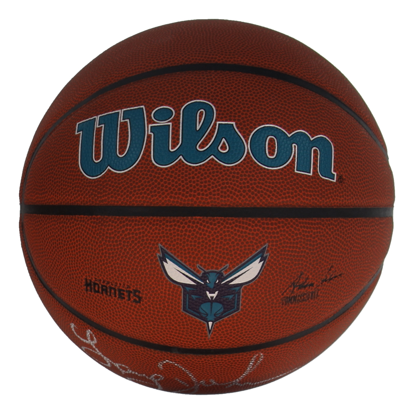 Wilson NBA Charlotte Hornets logo basketball has been hand-signed by Larry Johnson.