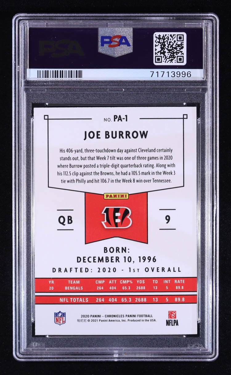 Joe Burrow 2020 Panini Chronicles Pink #PA1 RC (PSA 10)