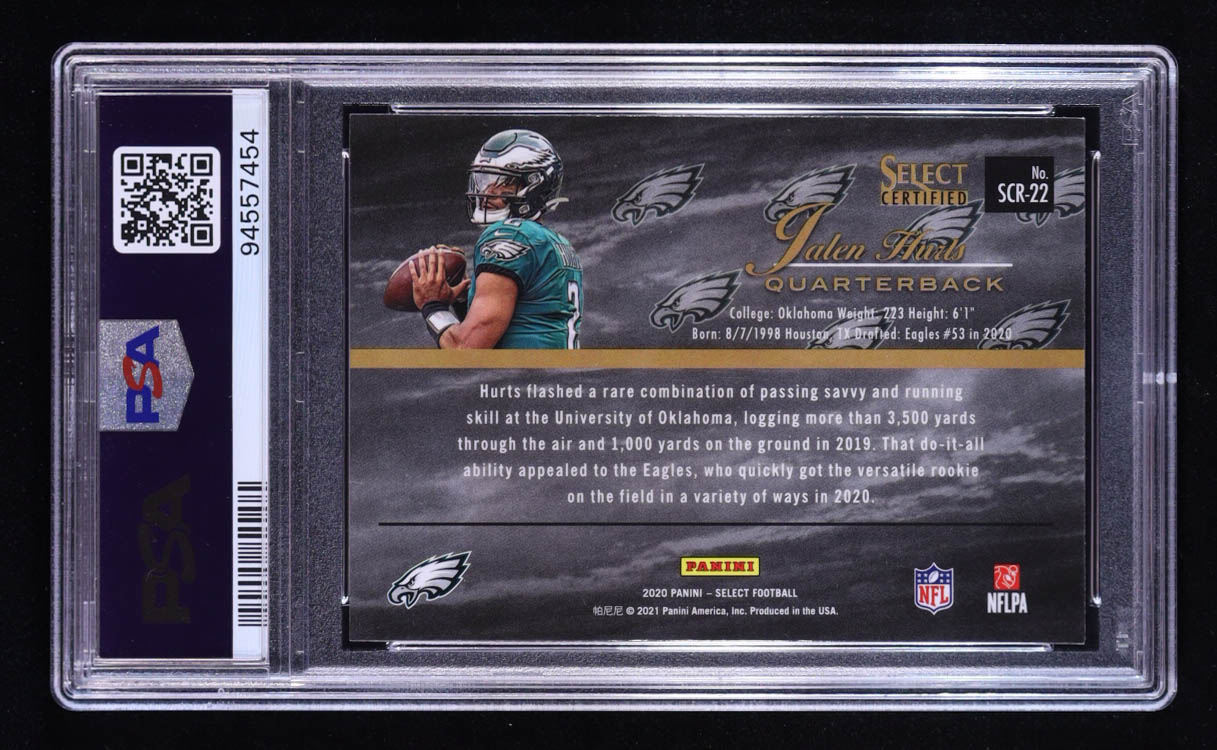 Jalen Hurts 2020 Panini Select Certified Rookies #SCR22 RC (PSA 9)