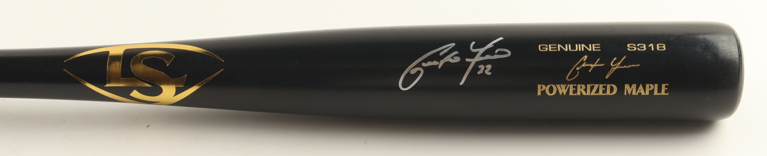 Louisville Slugger Player Model baseball bat has been hand-signed by Christian Yelich.