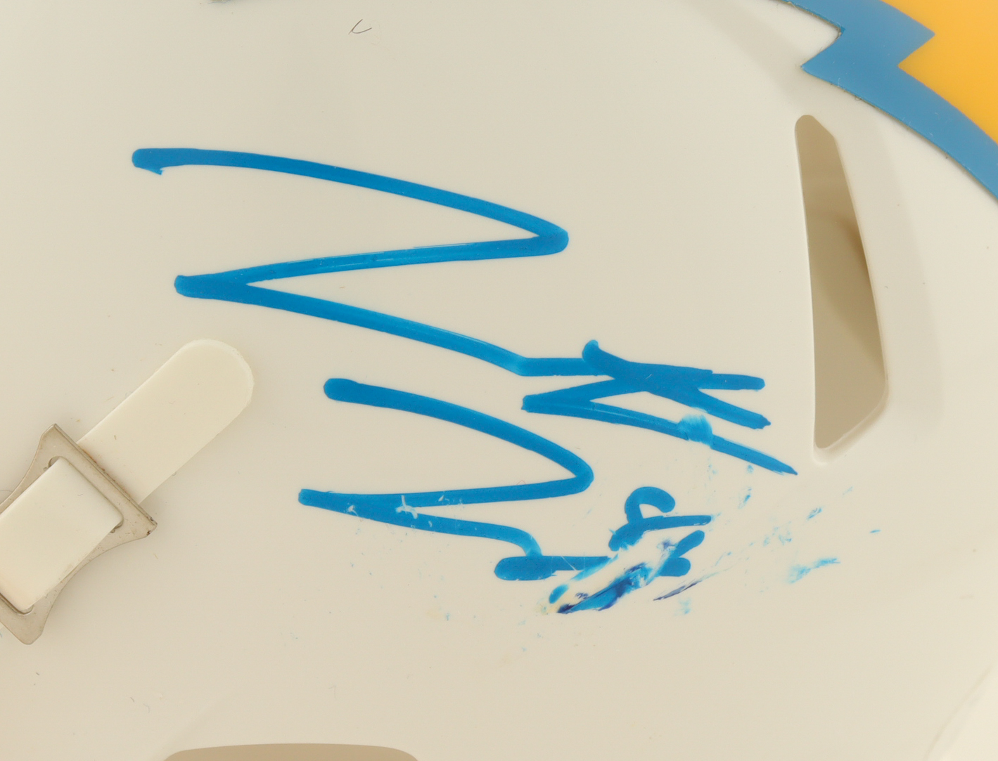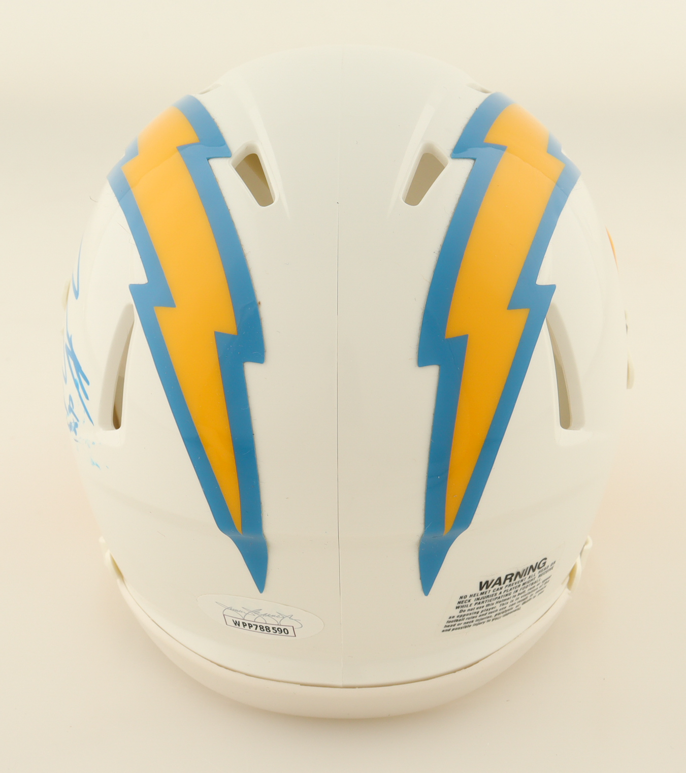 Riddell Los Angeles Chargers speed mini helmet. Hand-signed by Hunter Henry. Please note, the autograph is smudged.
