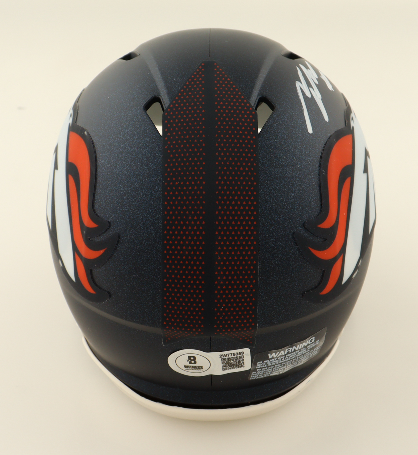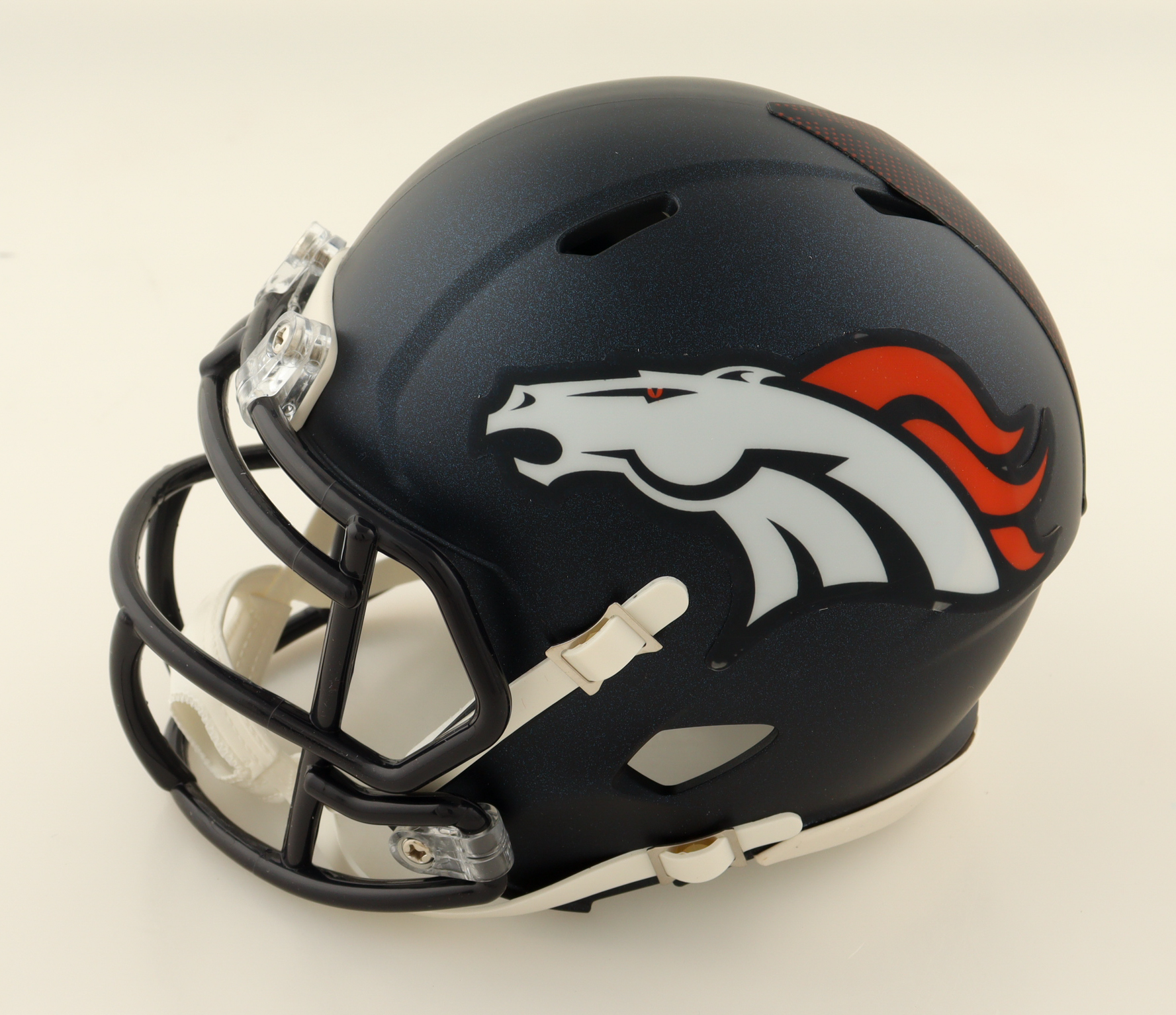 Riddell Denver Broncos Speed Mini Helmet has been hand-signed by Talanoa Hufanga.