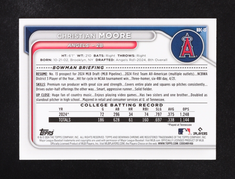 Christian Moore 2024 Bowman Chrome Draft #BDC13 RC