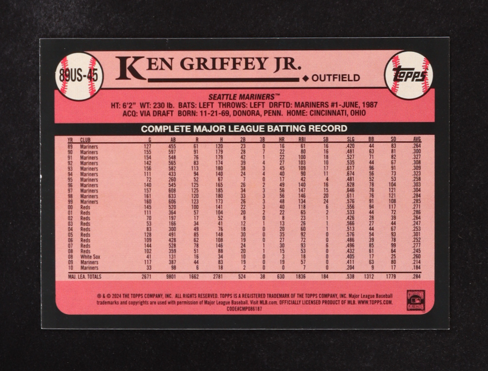 Ken Griffey Jr. 2024 Topps Update '89 Topps #89US45