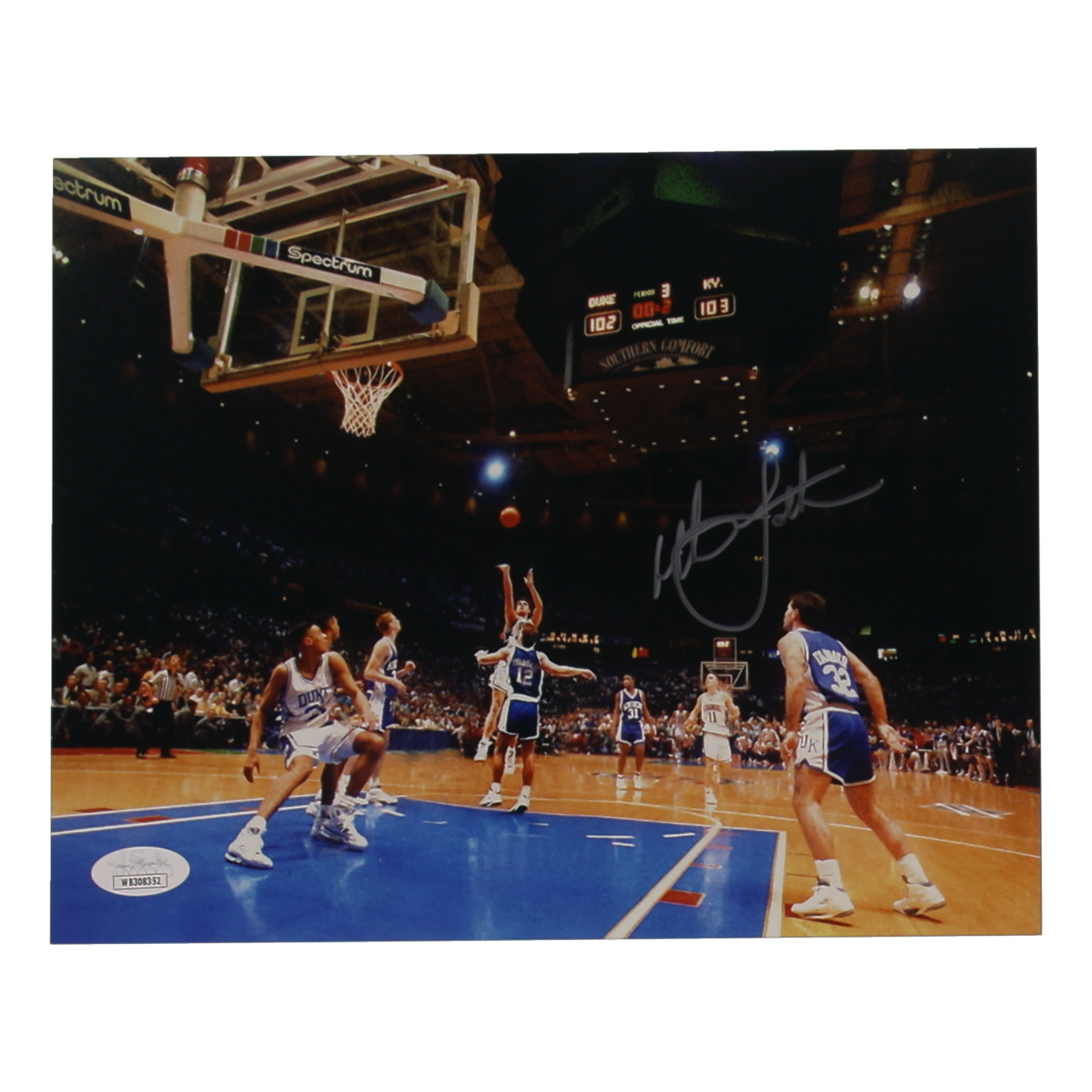 Photo measures 16” x 20” in size and has been hand-signed by Christian Laettner.