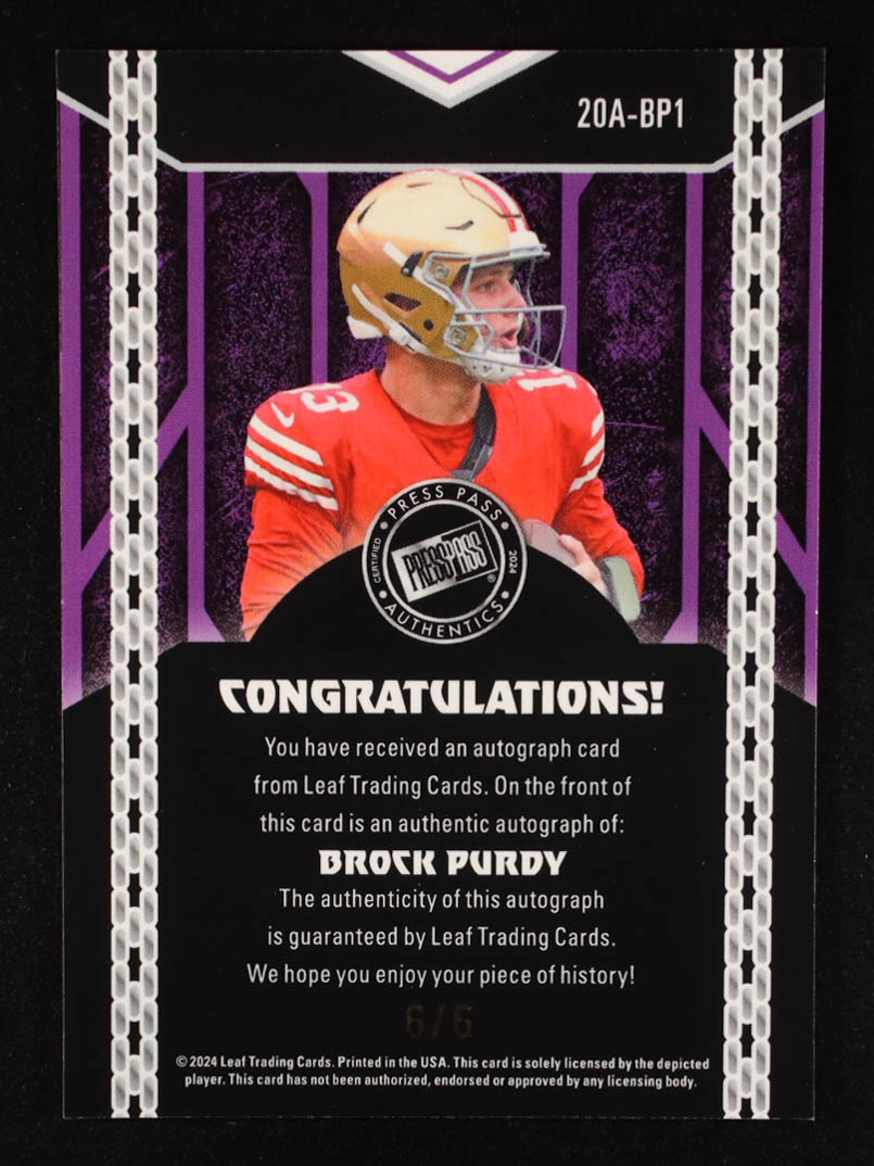 Brock Purdy 2024 Leaf Press Pass Autograph #20ABP1 #6/6