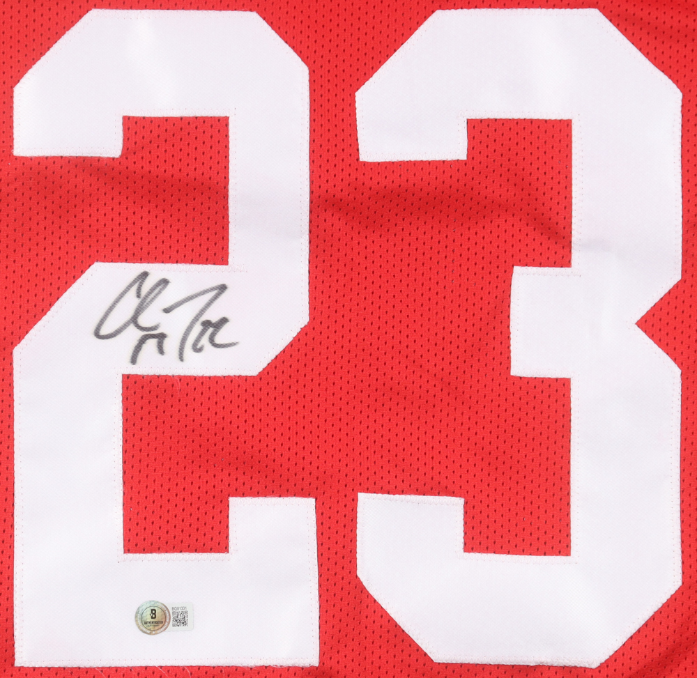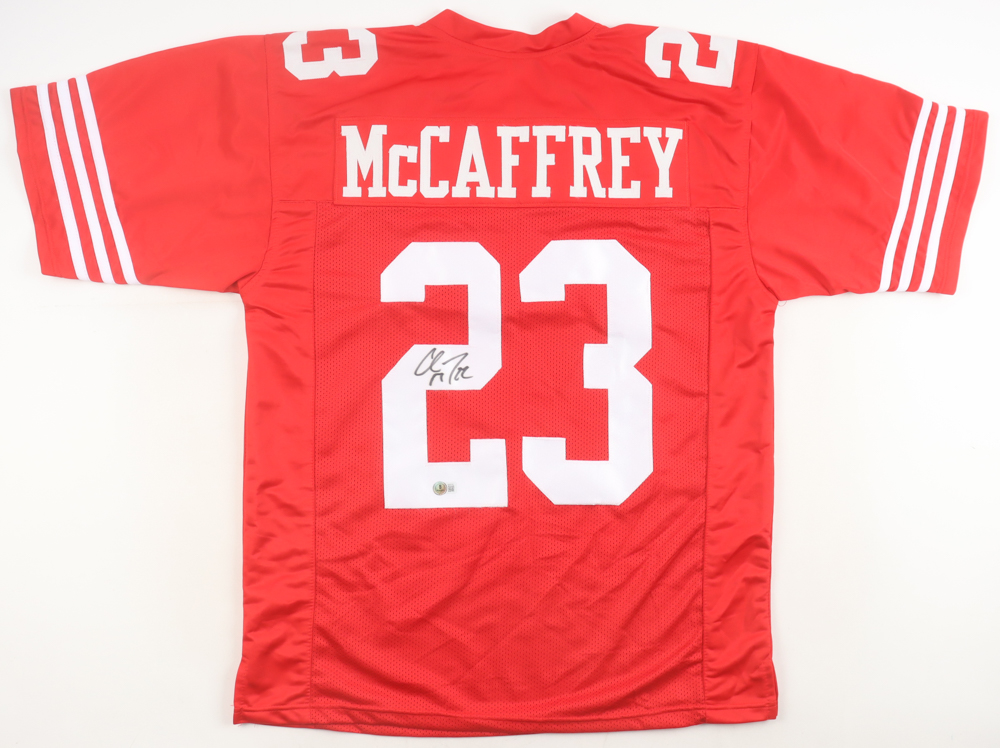 Custom jersey with everything sewn on, size XL. Has been hand-signed by Christian McCaffrey.