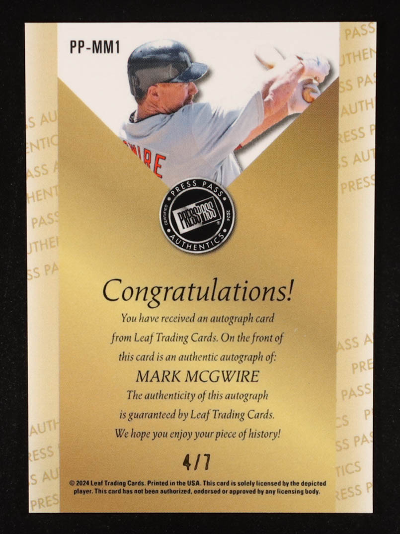 Mark McGwire 2024 Leaf Press Pass Authentics Autograph #PPMM1 #4/7