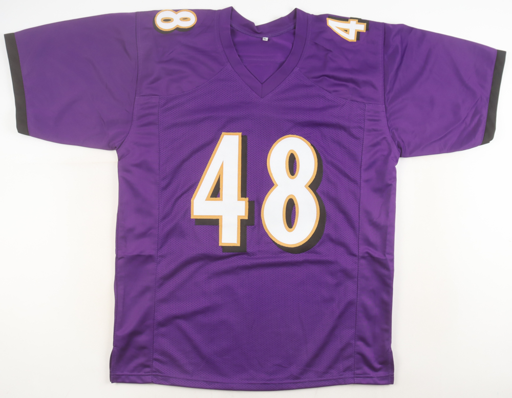Custom jersey with everything sewn on, size XL. Hand-signed by Patrick Queen.