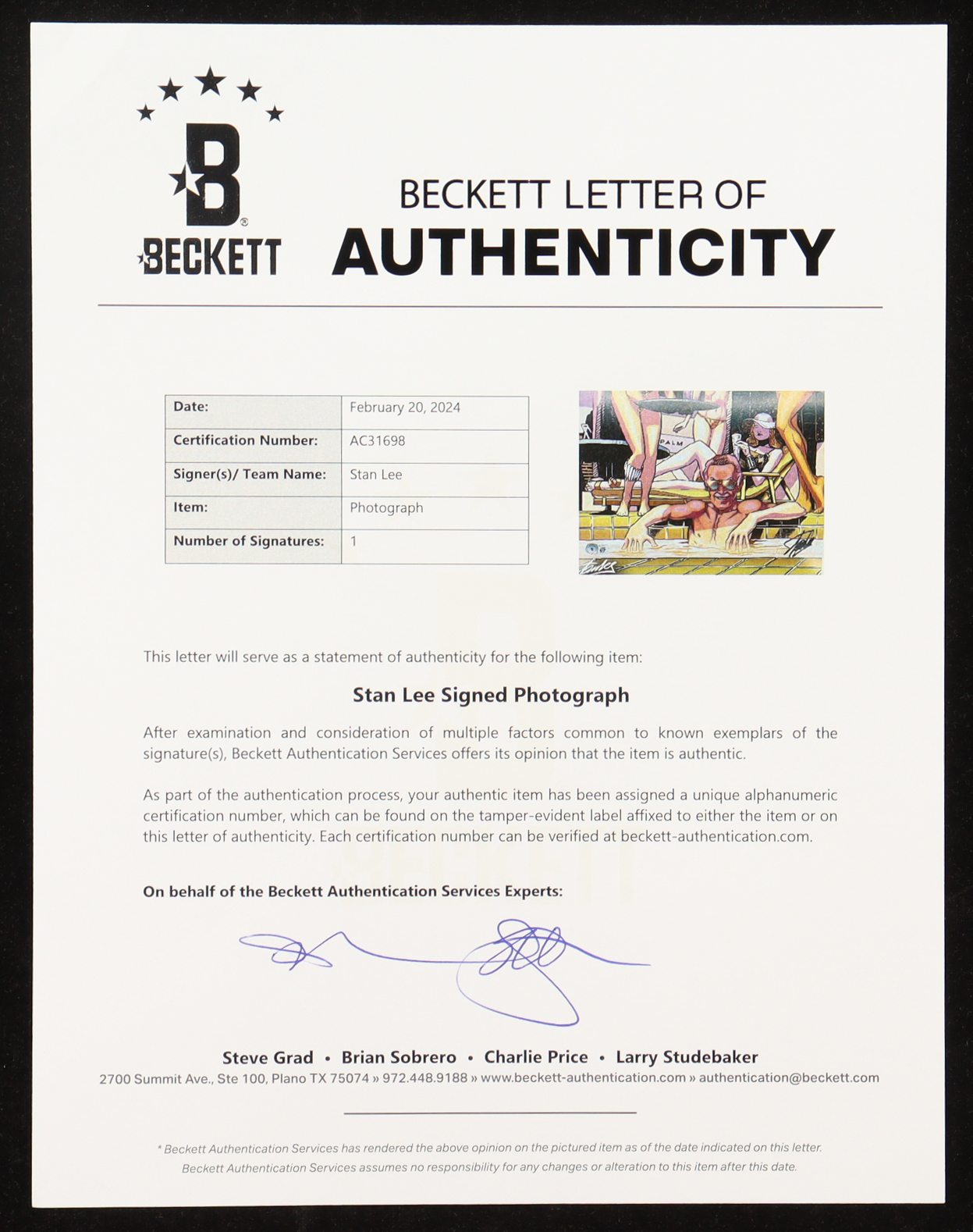 Photo measures 13" x 19" in size and has been hand-signed by Stan Lee (D. 2018).