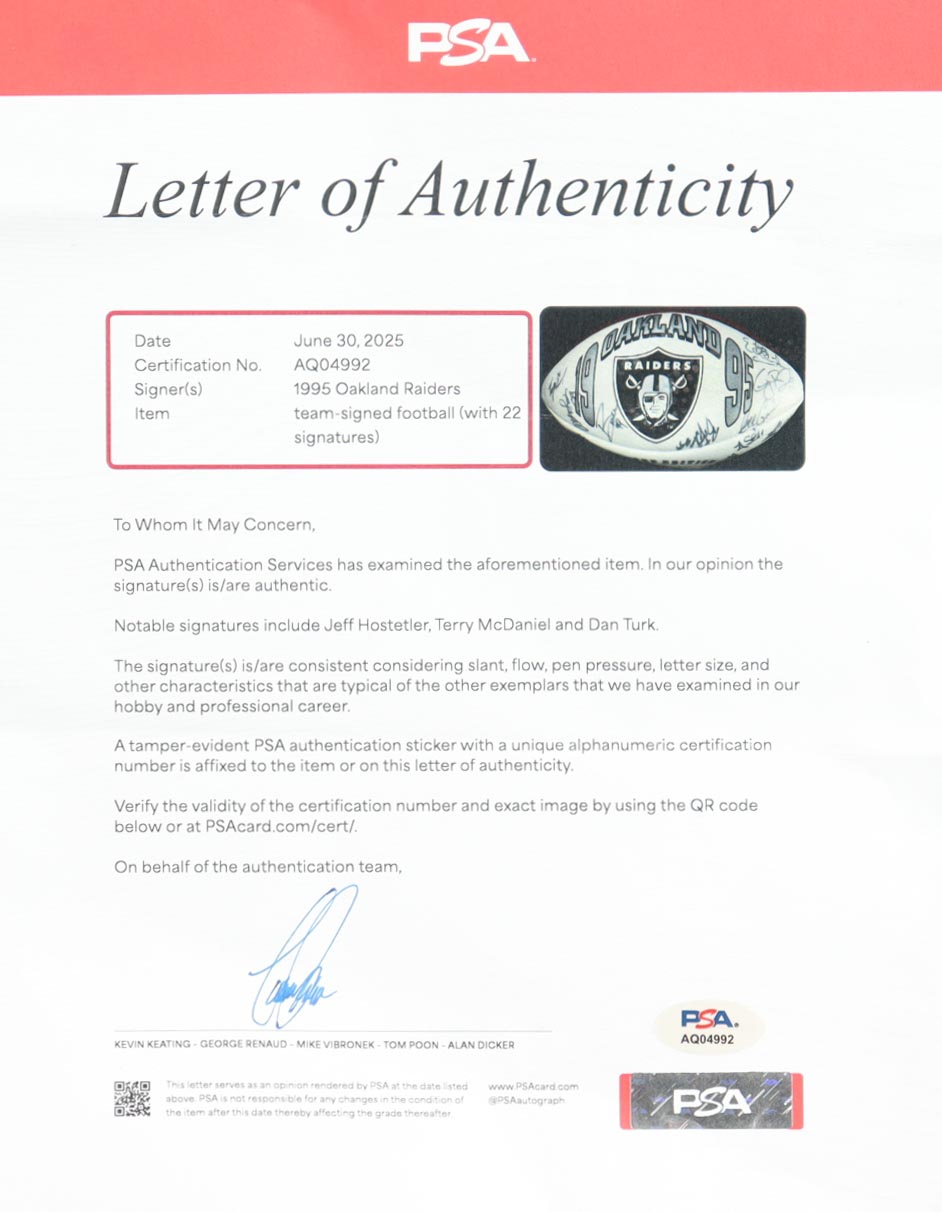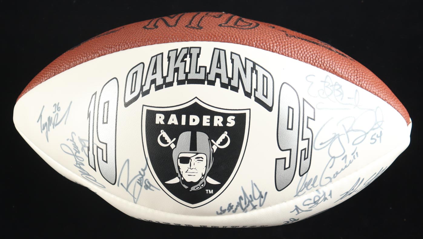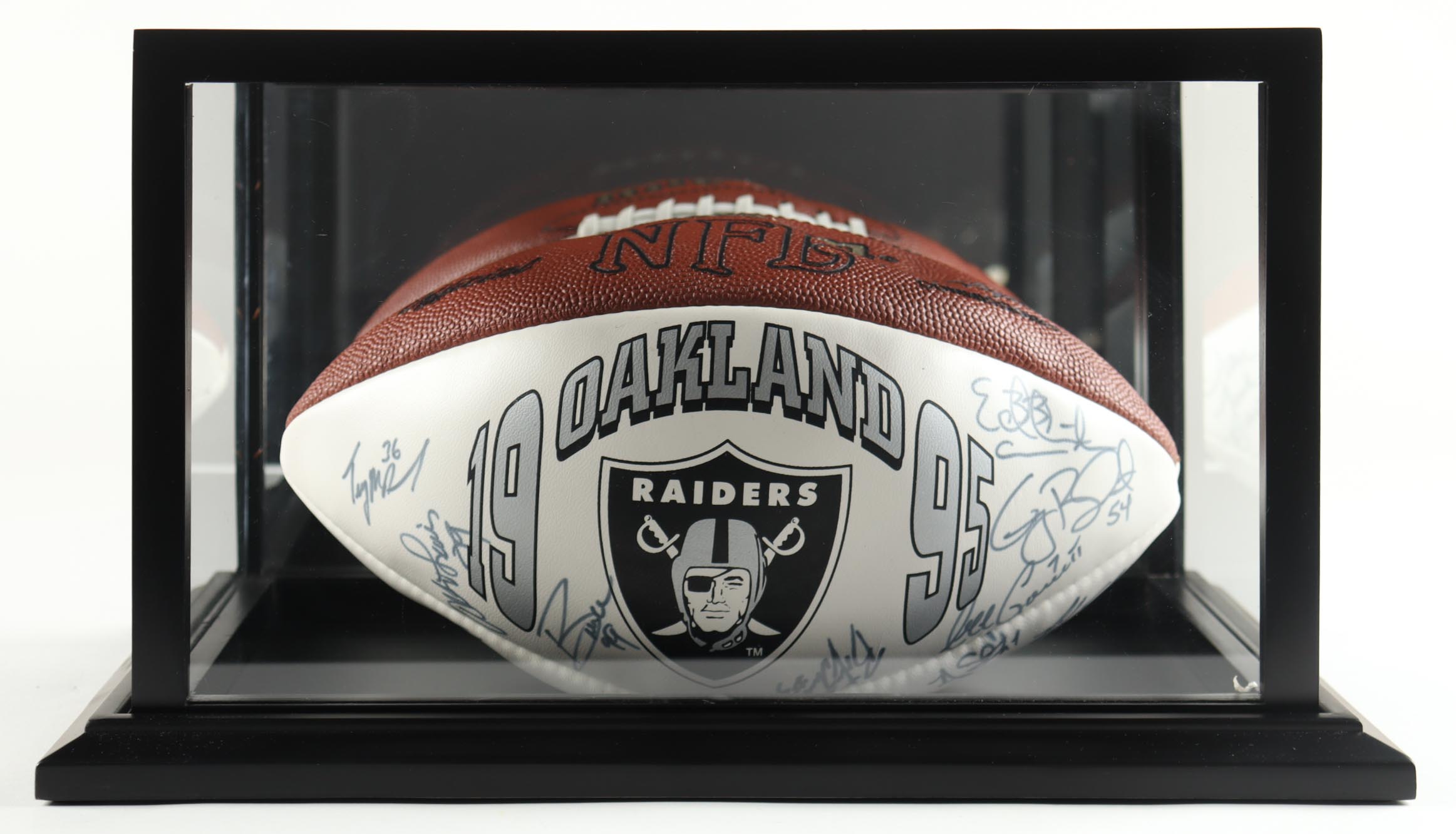 1995 Raiders LE Official NFL Football With Display Case Team-Signed By (22) With Jeff Hostetler, Albert Lewis, Terry McDaniel, Kevin Gogan (PSA)
