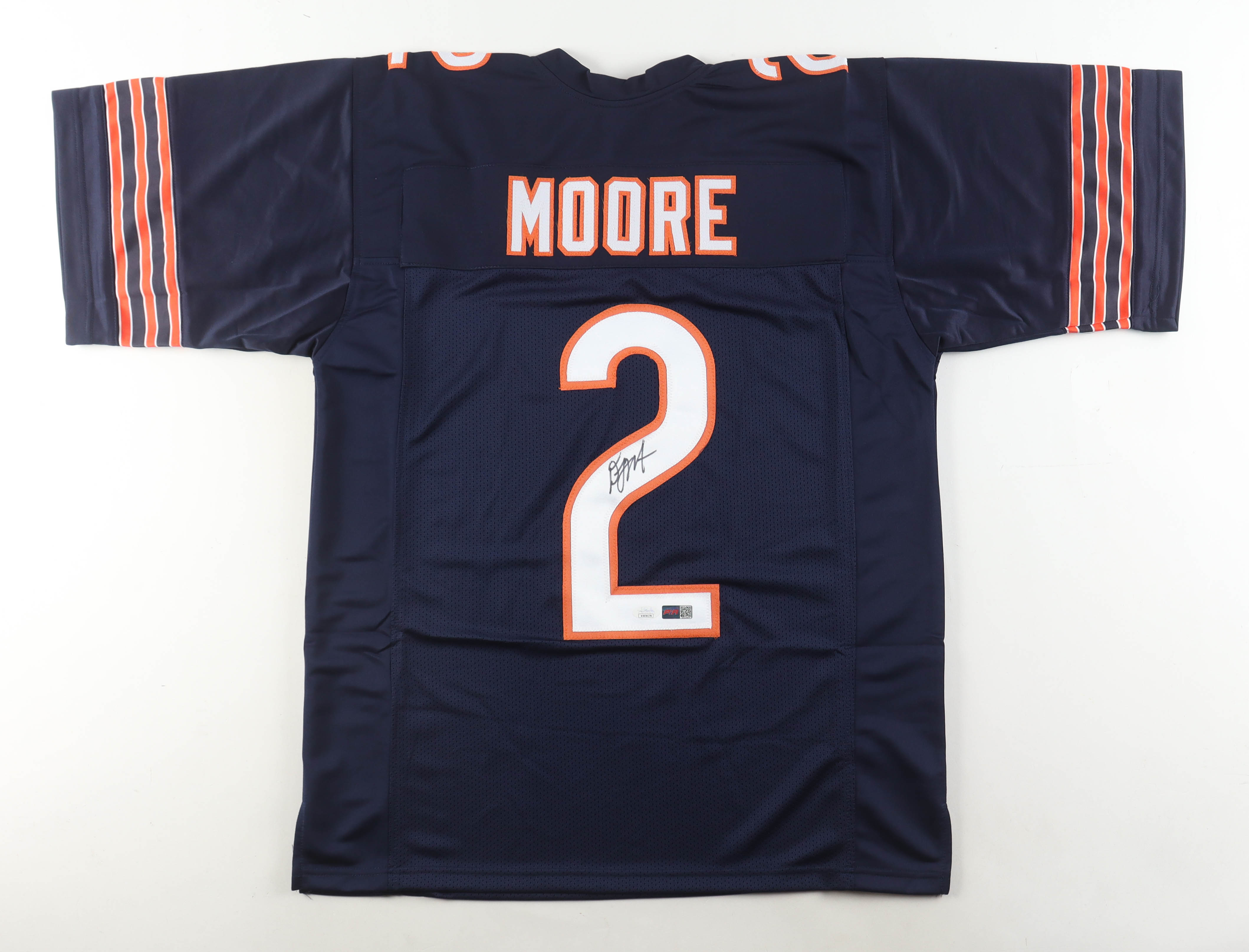 Custom jersey with everything sewn on, size XL. Hand-signed by D. J. Moore.