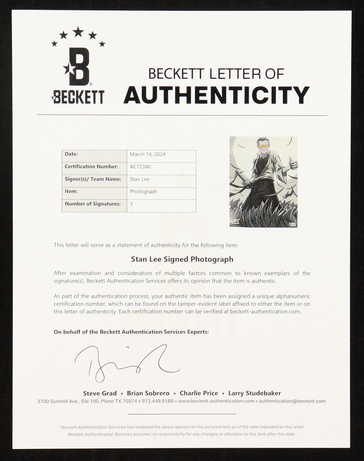 Stan Lee Signed 13x19 Art Print (Beckett)