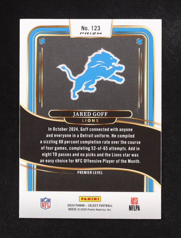 Jared Goff 2024 Select Prizm Zebra Shock #123