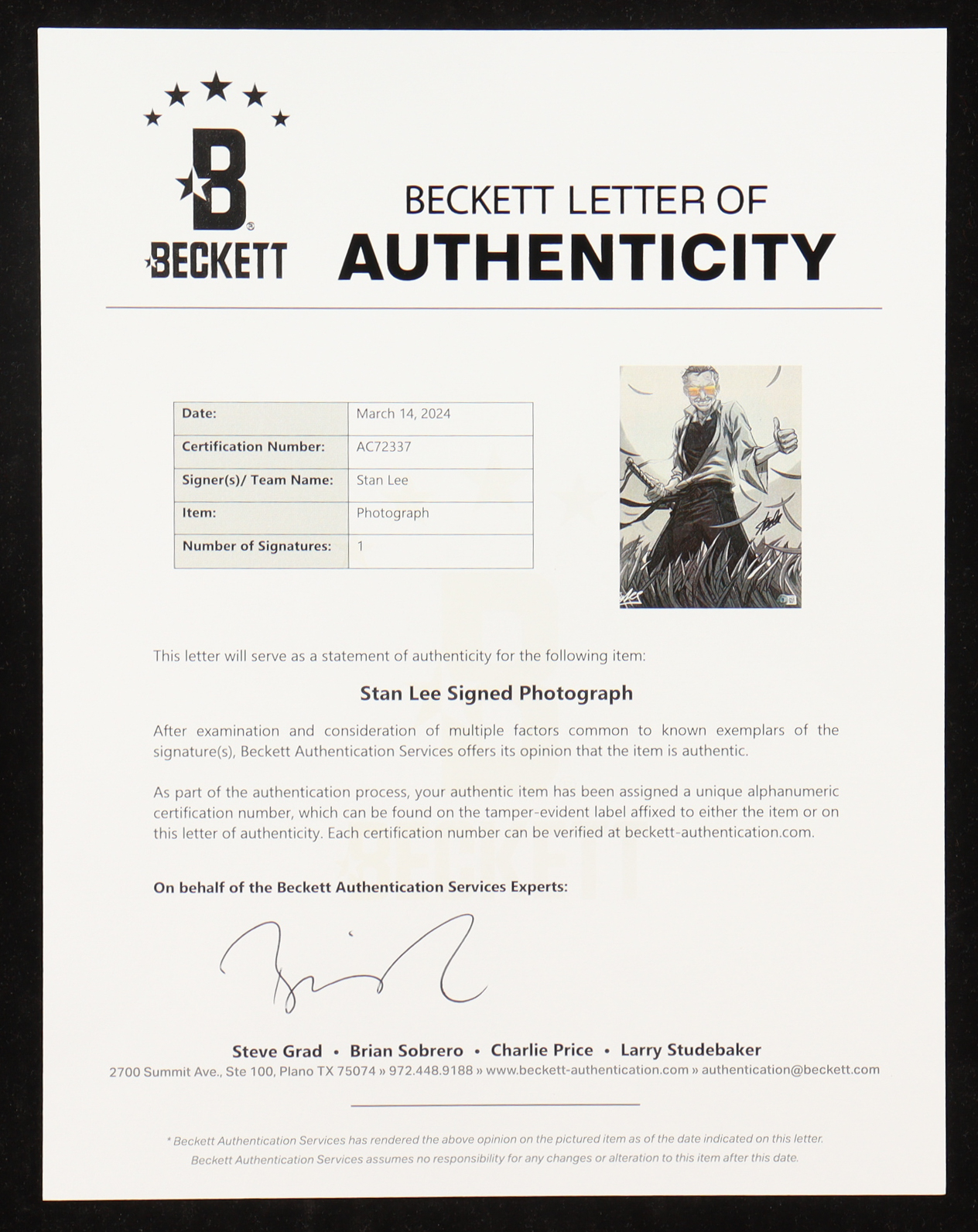 Stan Lee Signed 13x19 Art Print (Beckett)