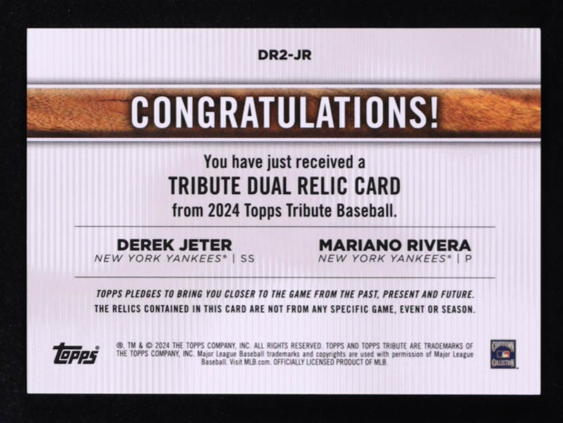 Mariano Rivera / Derek Jeter 2024 Topps Tribute Dual Player Relics Gold #DR2JR #50/75