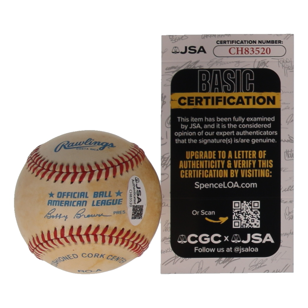 Rawlings Official American League baseball has been hand-signed by Tony Oliva (Minnesota Twins, HOF). Please note, the ball is naturally toned and stained throughout.